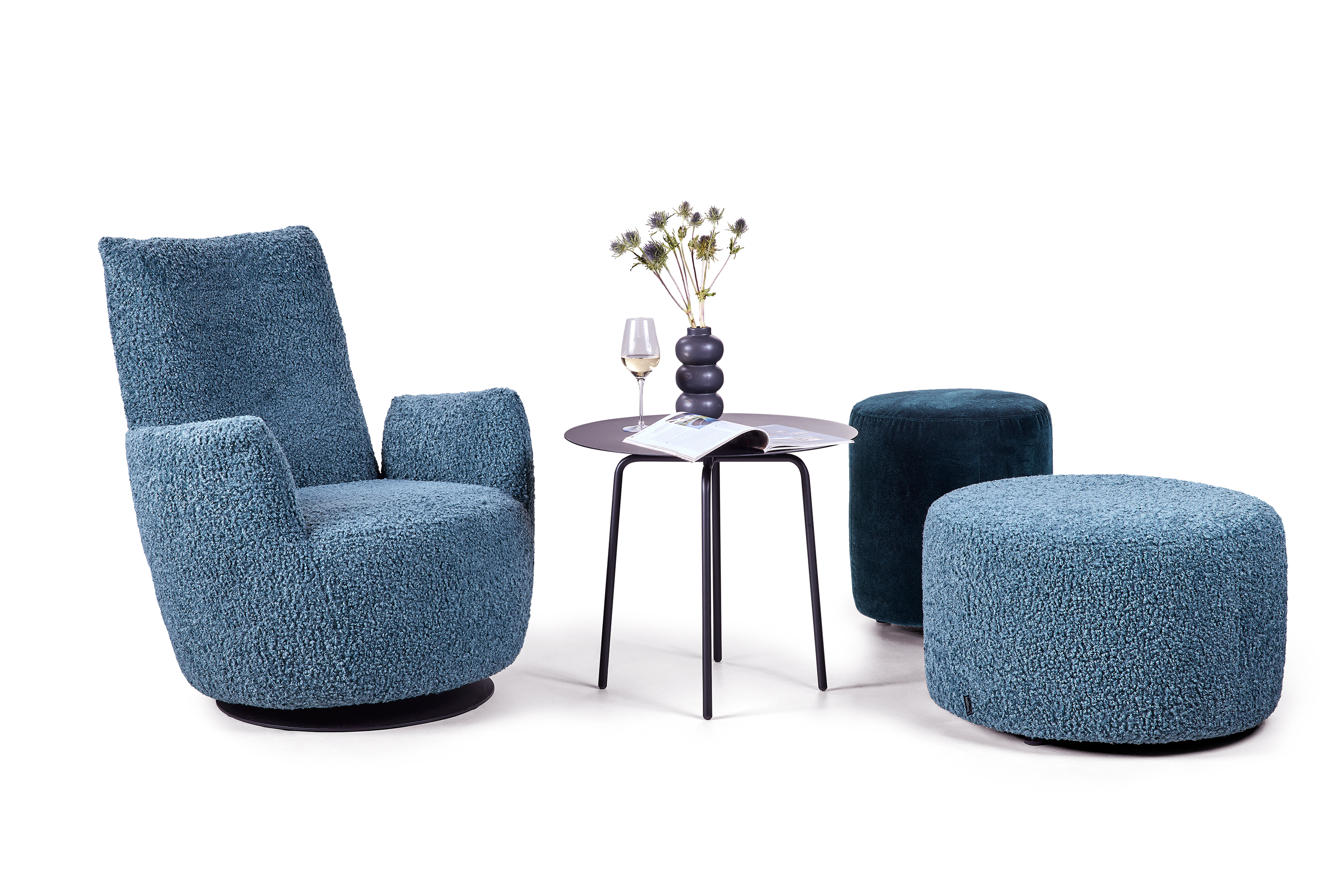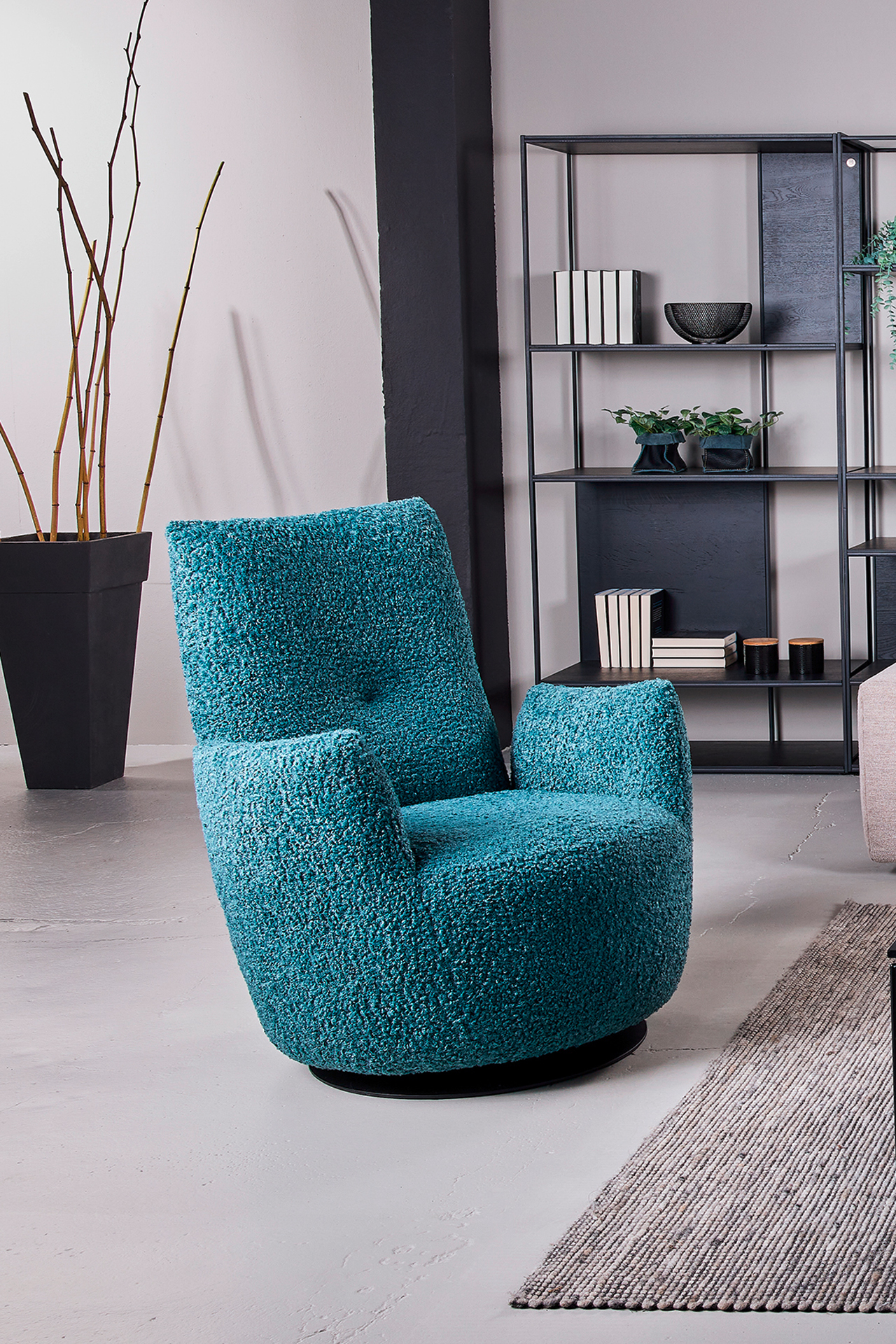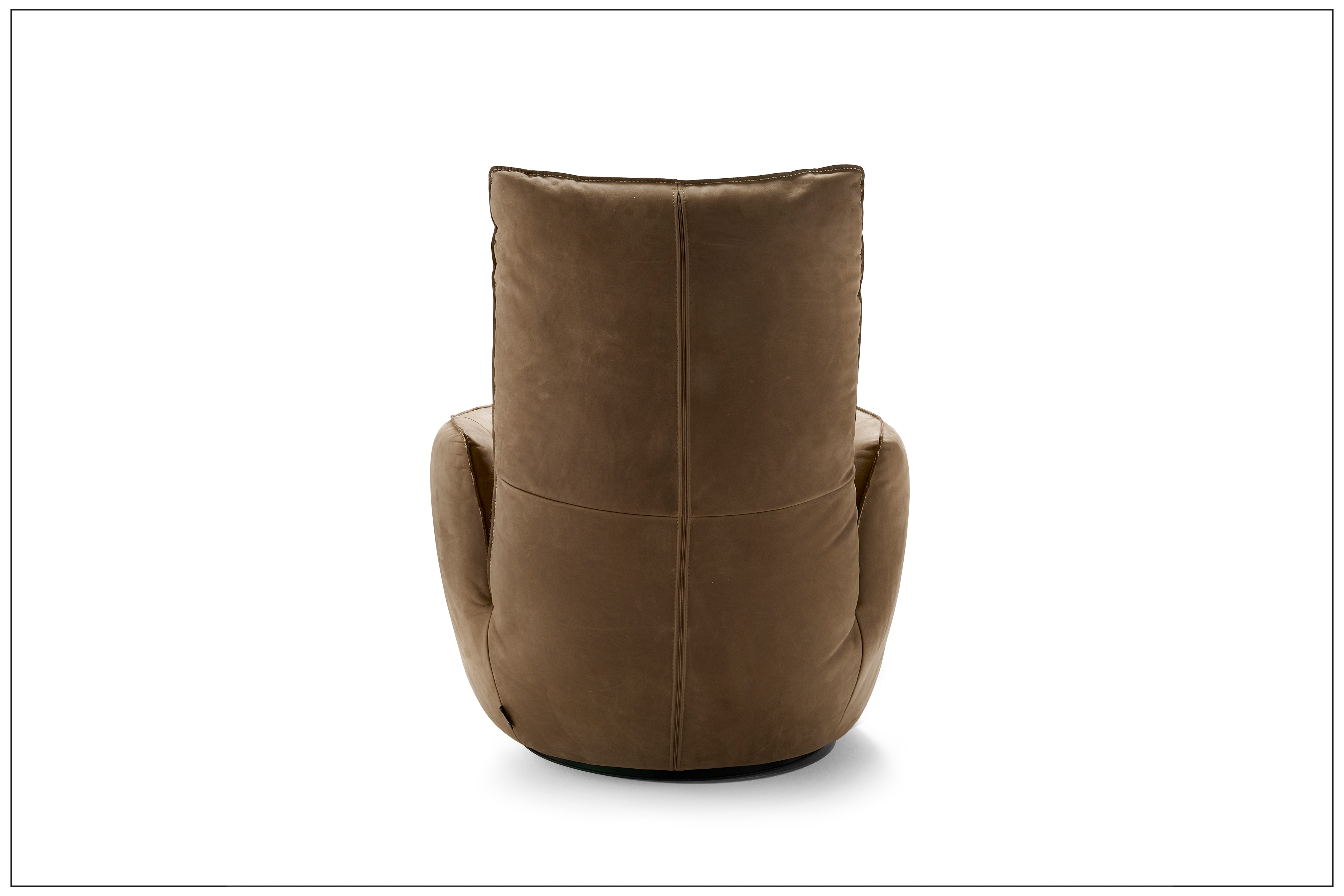 LET'S SWING AND FEEL GOOD. CASUAL, RELAXED DESIGN. A PLACE TO FEEL GOOD. UPHOLSTERY IN SOFT CUSHION LOOK. THE SWIVEL CHAIR WITH HIGH BACK SHELL AND 360° SWIVEL FUNCTION OFFERS MAXIMUM SEATING COMFORT. BASE PLATE MADE OF STEEL, BLACK STRUCTURE-COATED FOR A FIRM STAND. THE LARGE SELECTION OF COVERS, EITHER IN FINE LEATHERS OR IN PATTERNED / PLAIN FABRICS, CHANGES THE APPEAL OF THE SMART PIECE. UNIQUE PIECE PRODUCTION.