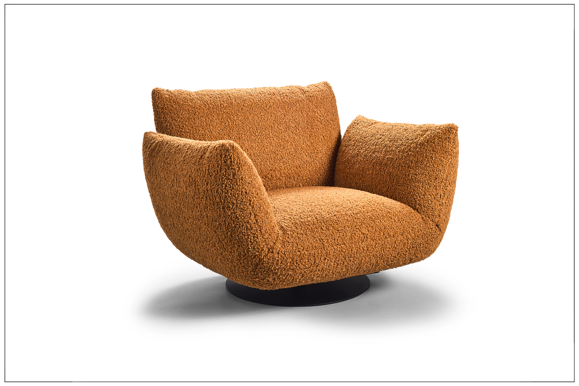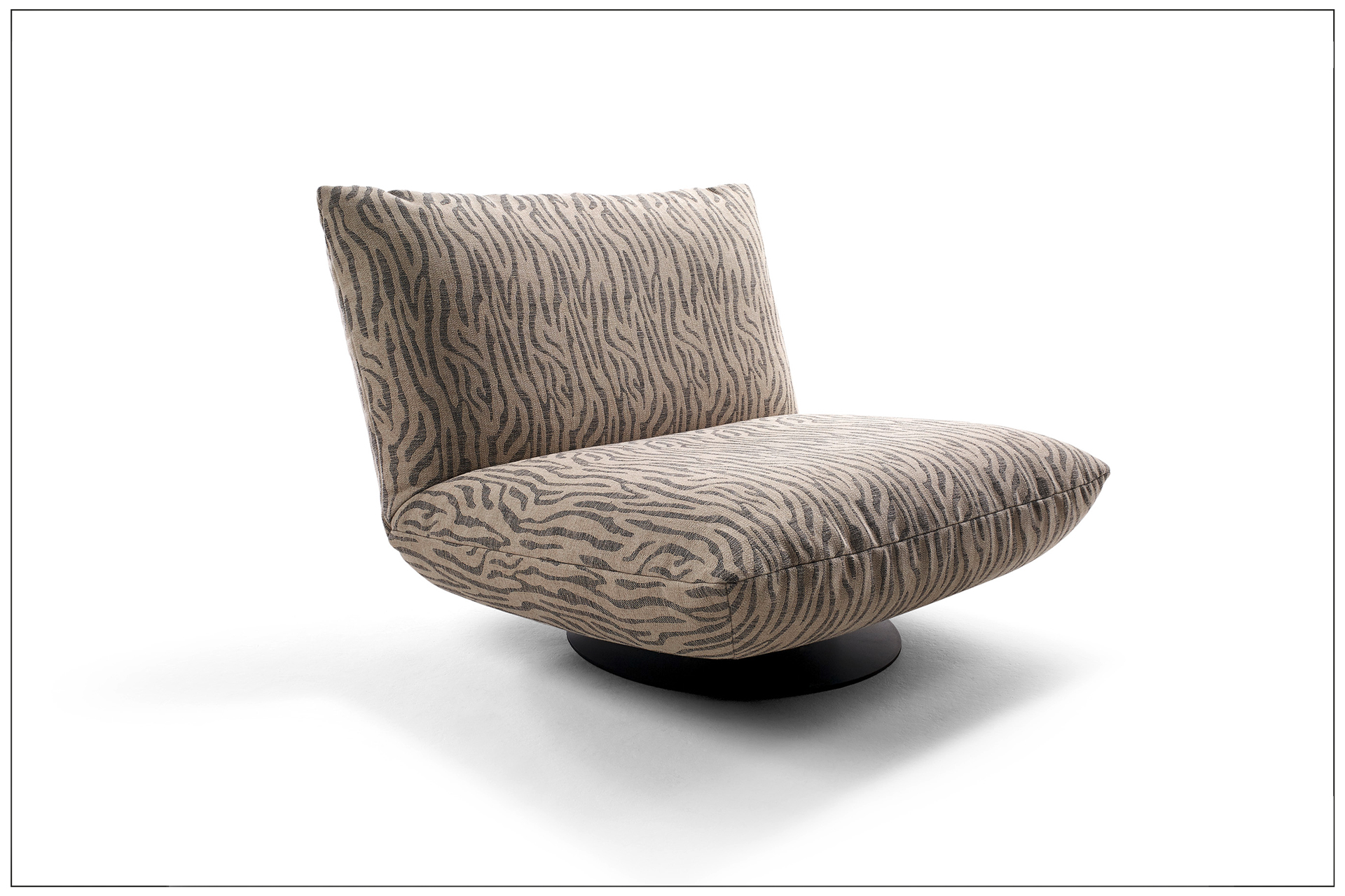 EXTRAVAGANT DESIGN. MAXIMUM COMFORT. PURE RELAXATION. OPTIONALLY AVAILABLE AS A ROTARY AND ROCKING CHAIR, ARMCHAIR, SOFA, LOUNGER AND RECAMIERE. ELEMENTS WITH A CUSHION LOOK ON A METAL BASE FRAME, MATT FINE STRUCTURE POWDER-COATED. LARGE SELECTION OF TEXTILES AND LEATHERS. UNIQUE PIECE PRODUCTION.