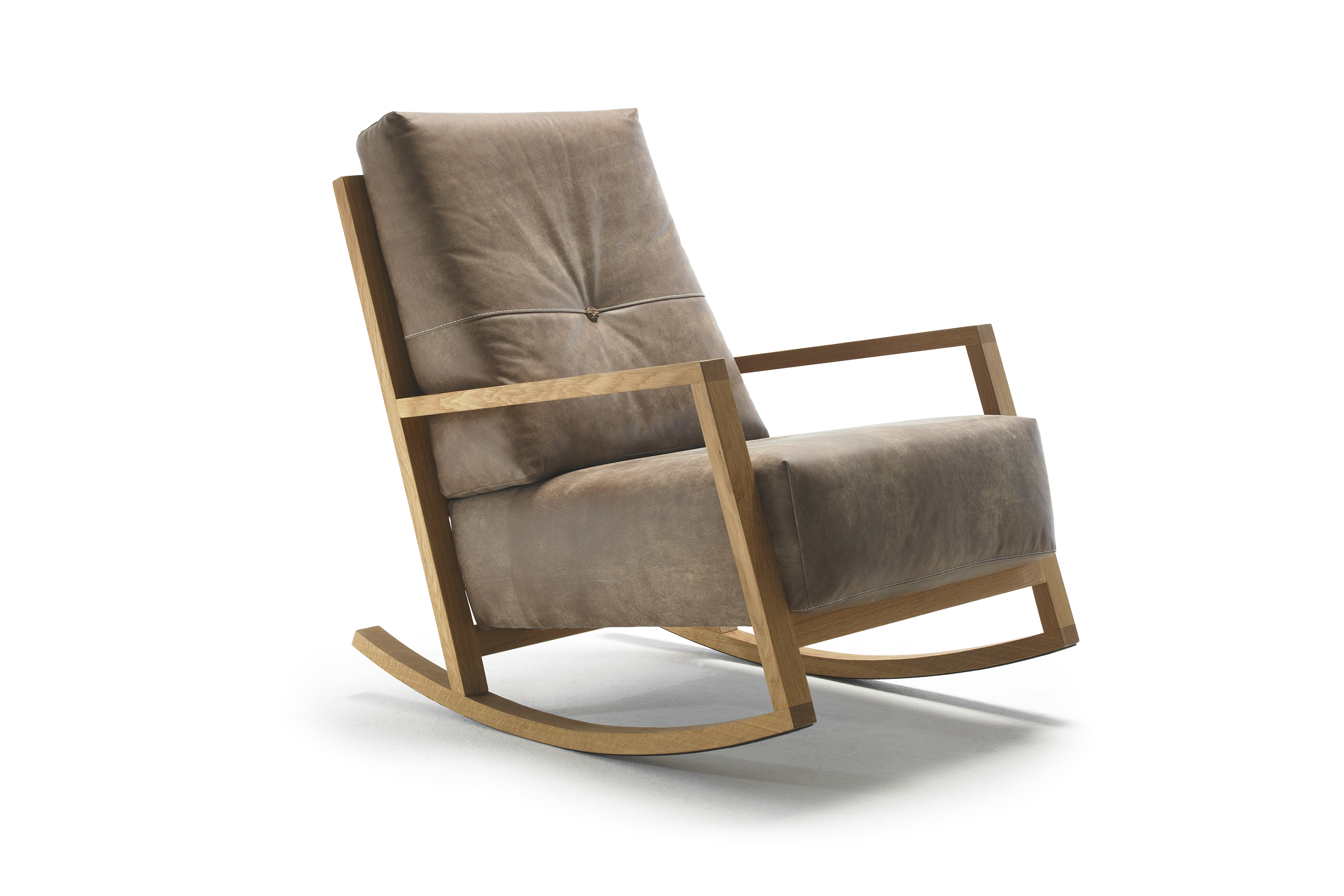 SWINGELING - THE COSY AND MODERN SOLID WOOD ROCKING CHAIR. PURE NATURE! WILD STEAMED AND OILED OAK IN COMBINATION WITH HIGH-QUALITY WILD ANILINE LEATHER, FELT OR FABRIC IN HAND-WEAVE-OPTICS. THE INSERTED SOFT SEAT- AND BACK-UPHOLSTERY ENSURES COMFORTABLE SITTING. A PERFECT LOOK FOR A MODERN LIVING ROOM. SWINGELING IS A GREAT FUN AND SIMPLE TO COMBINE WITH SEVERAL MODELS OF BULLFROG.