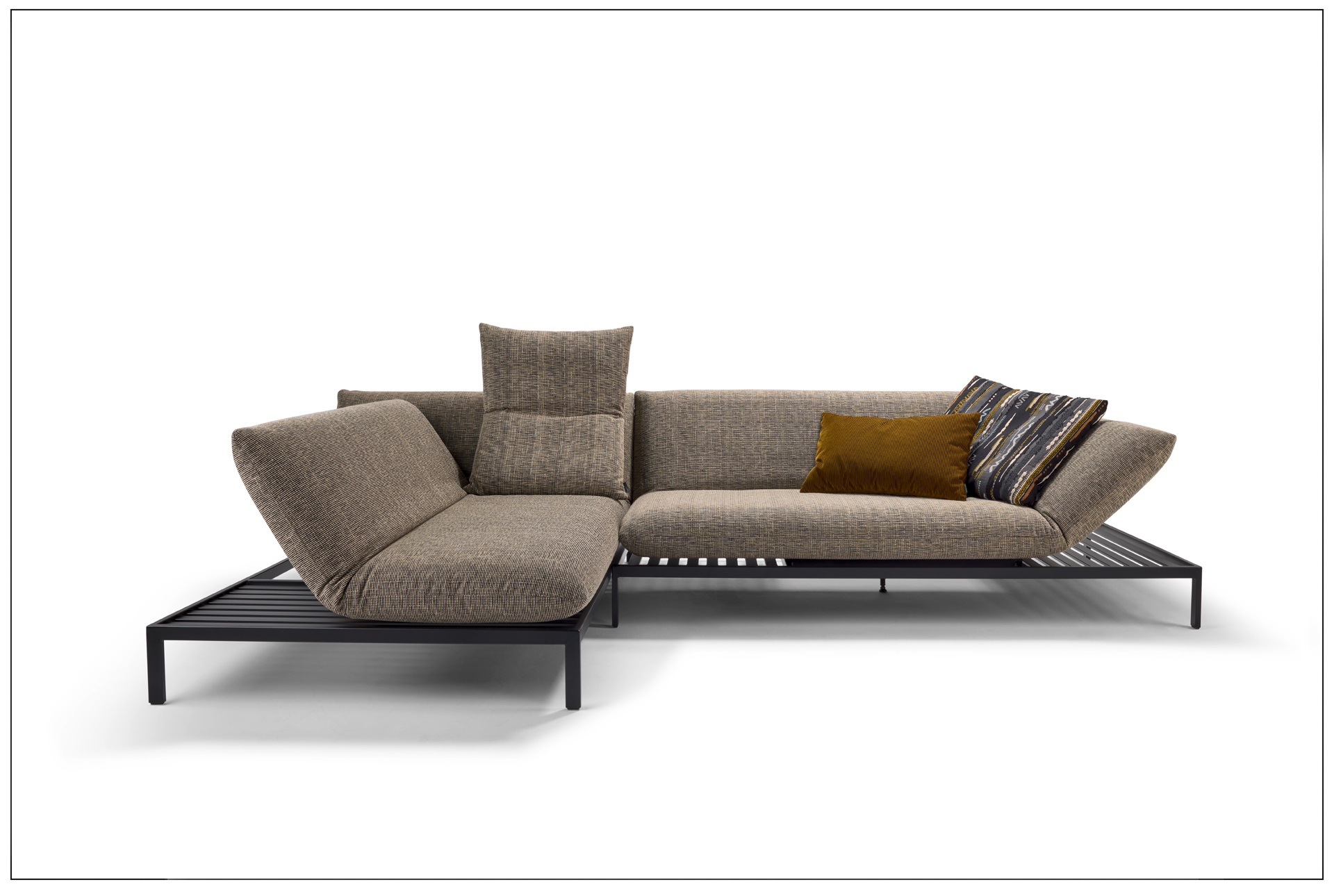 THE FREAK CORNER. THE BULLFROG SUCCESS FUNCTION IN A NEW DESIGN. PURISTICALLY CLEAR. ELEMENTS MANUALLY SLIDABLE BY 40 cm. THE METAL FRAME WITH SLIDING FUNCTION IS PARTICULARLY IMPORTANT FOR OUTDOOR USE. LESS WEIGHT AND HARDLY ANY SPACE FOR WATER TO ACCUMULATE. INDIVIDUAL TYPE FINISHES AND OUTDOOR FABRICS CAN BE SELECTED. MATCHING: WIND- AND RAINPROOF COVERS. UNIQUE PIECE PRODUCTION.