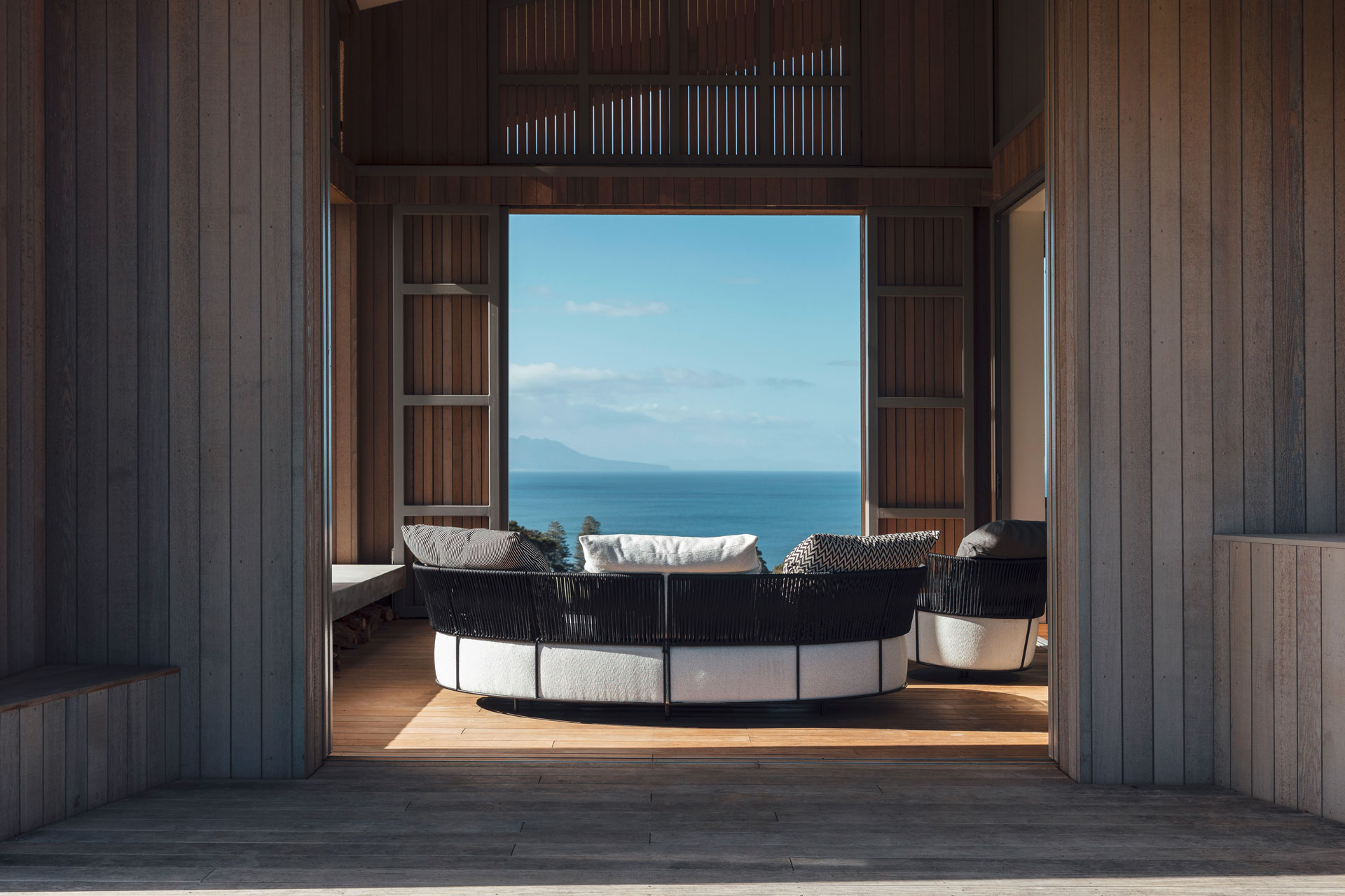 OUR PARTNER IN NEW ZEALAND SARSFIELD BROOKE LTD. TOGETHER WITH ARCHITECT BELINDA GEORGE AND THE COMPANY SERENE PROJECTS, HAS REALISED AN EXTRAORDINARY PROJECT. ON THE EDGE OF THE MAKATANA REGION, OVERLOOKING OMAHA BAY, STANDS A HOUSE THAT EMBODIES THE SIMPLE ARCHITECTURE THAT HAS BECOME SYNONYMOUS WITH PROPERTIES ON RUGGED COASTLINES - WITH A FAÇADE THAT WEARS OVER TIME. WHAT MAKES IT SPECIAL IS THE FLUID TRANSITION FROM INDOORS TO OUTDOORS. THE PHOTOGRAPHY IS BY DUNCAN INNES.