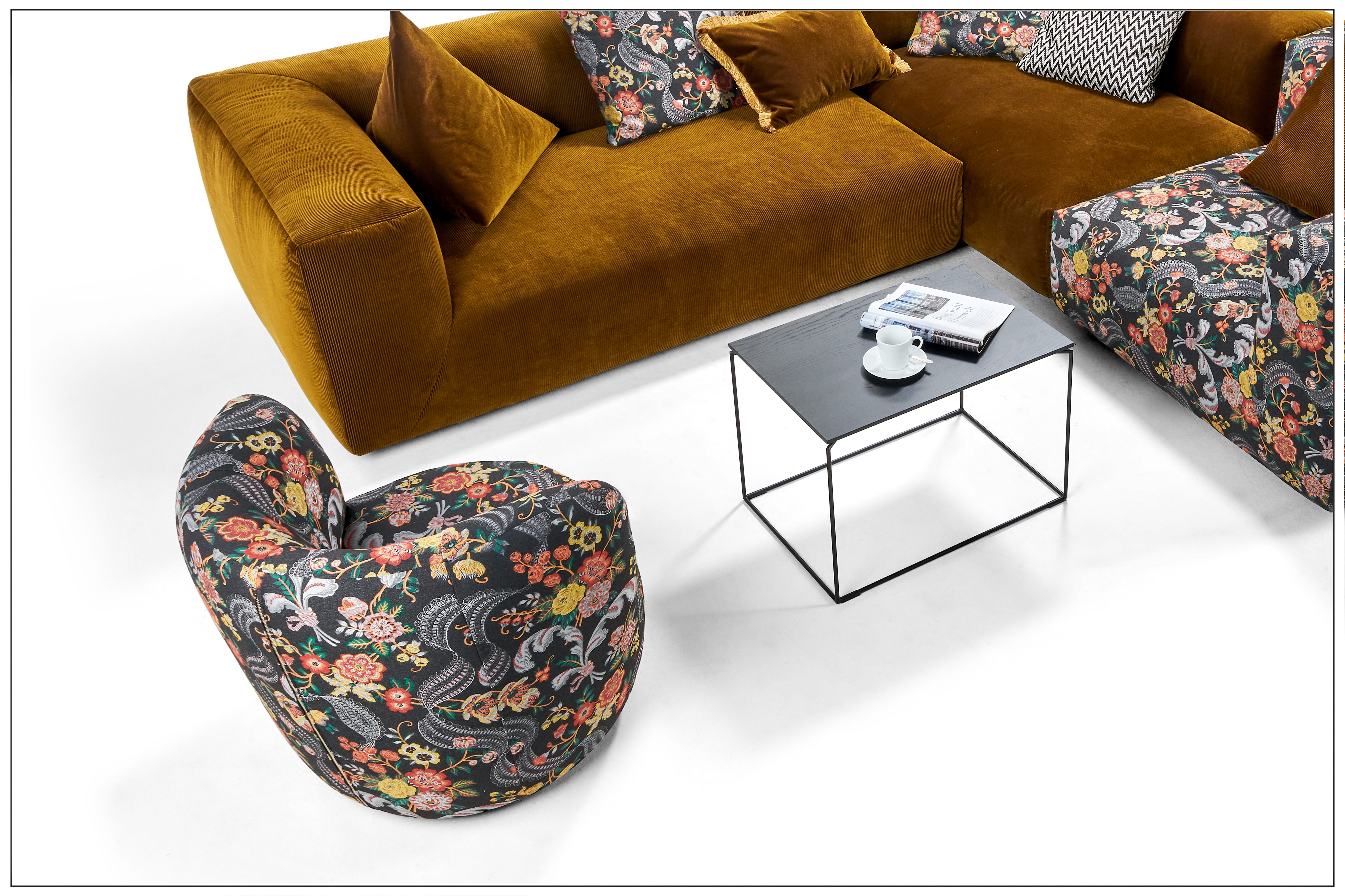 MOVING AND GROOVING. STYLISHER DREH- UND SCHAUKELSESSEL MIT DEKORATIVEM REISSVERSCHLUSS AUF DER RÜCKSEITE. BEHAGLICHER SITZKOMFORT FÜR MAXIMALE ENTSPANNUNG. DAZU PASSENDER HOCKER MIT SOFTPOLSTERUNG. EIN LIEBLINGSSTÜCK. FUSSPLATTE AUS STAHL, MATT SCHWARZ, FEINSTRUKTUR PULVERBESCHICHTET. BEZÜGE (STOFF UND LEDER) SOWIE NAHTVERARBEITUNG WÄHLBAR. ALS UNIKAT GEFERTIGT.