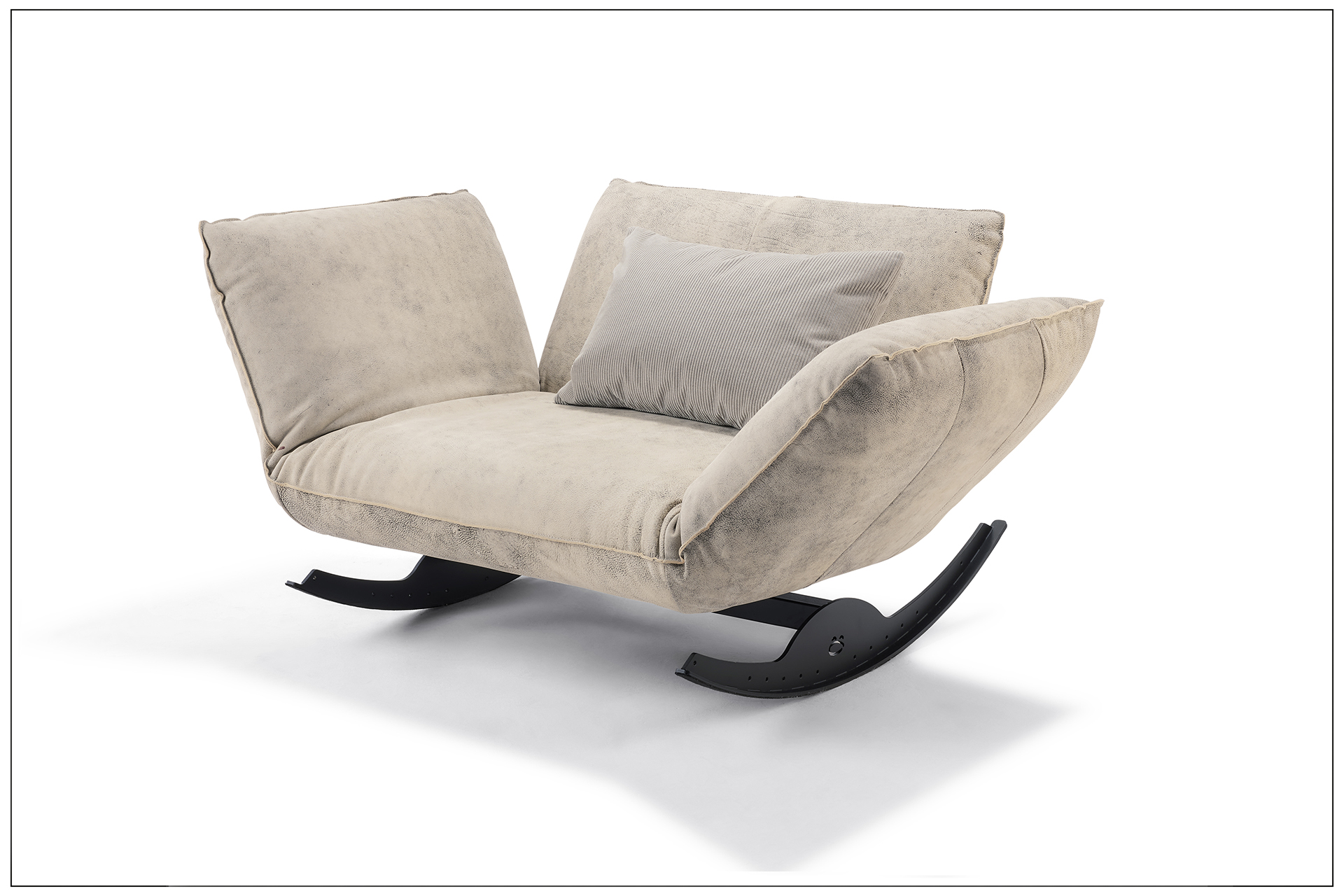 THE HAPPINESS. BESONDERES SITZMÖBEL MIT SPASSFAKTOR. SITZEN, WIPPEN, LIEGEN UND DAS LEICHTE SCHAUKELN GENIESSEN. DEN INDIVIDUELLEN NUTZEN ERMÖGLICHEN DIE VERSTELLBAREN ARMTEILE UND DAS BEWEGLICHE RÜCKENPOLSTER. AUCH KANN MAN MIT WENIGEN HANDGRIFFEN DIE SCHAUKELFUNKTION ABSTELLEN. ALS UNIKAT GEFERTIGT.