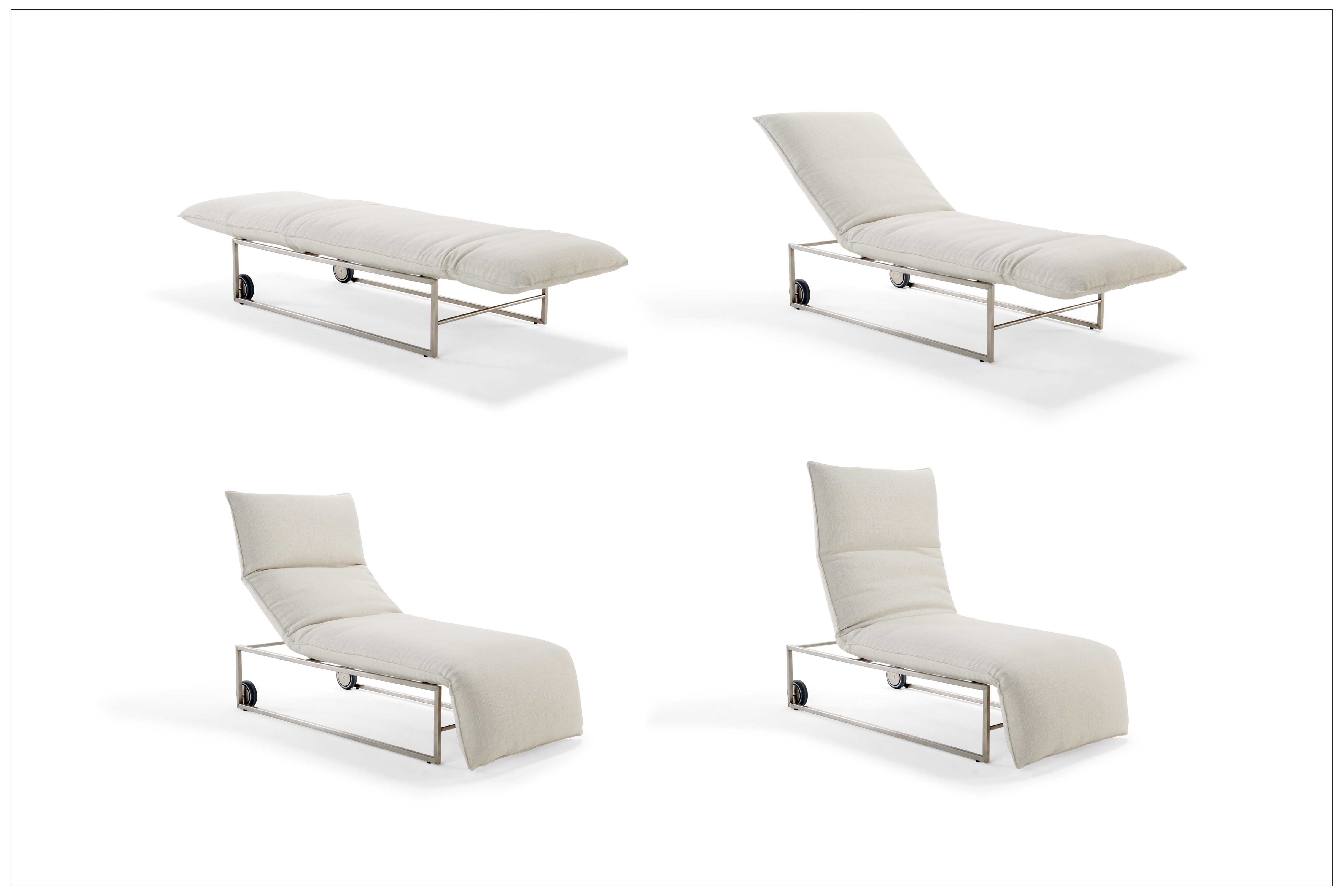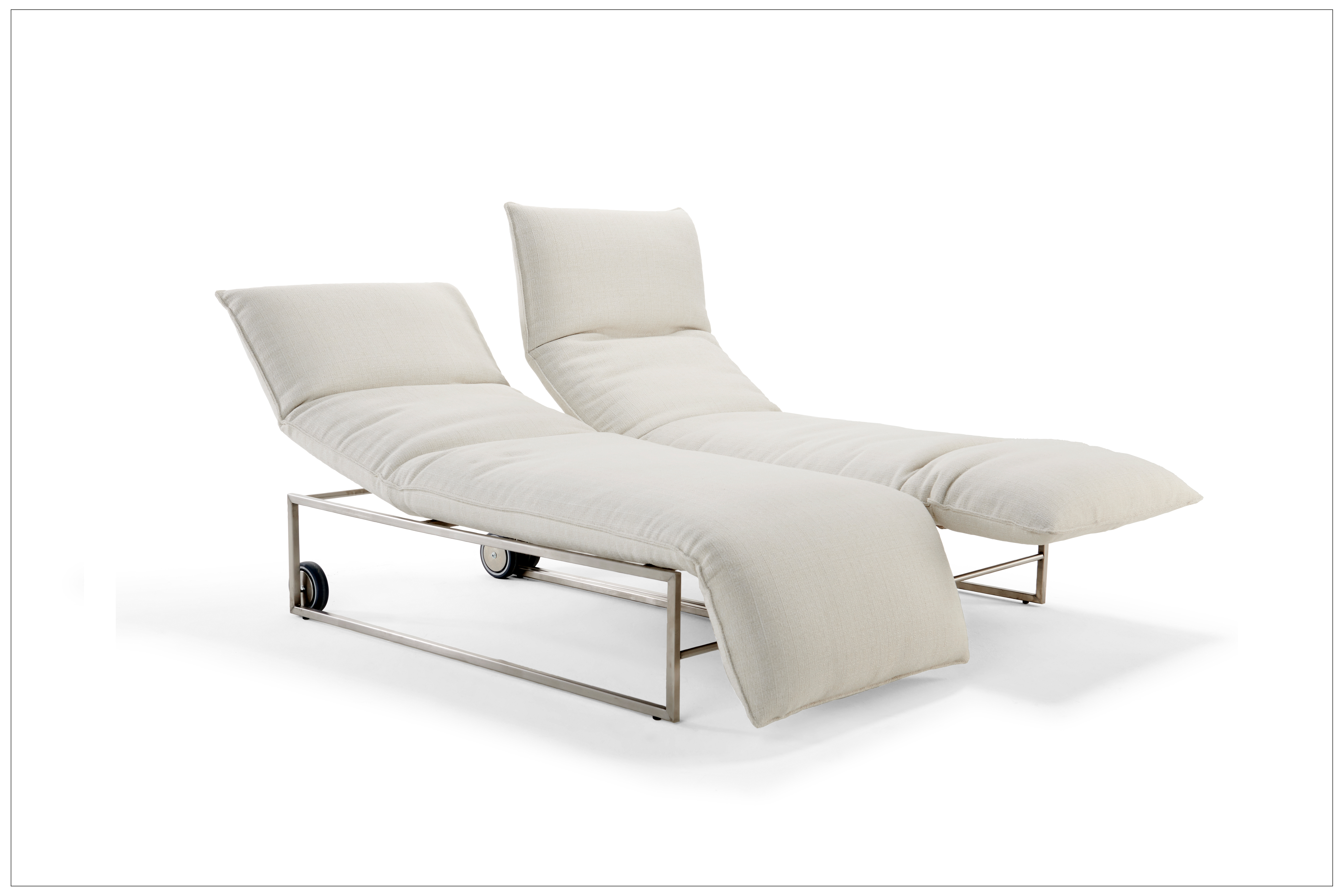 JUST RELAX. WIE AUF EINER WOLKE SCHWEBEN. OUTDOOR GARTENLIEGE UND SESSEL MIT SOFTEM, KISSIGEM POLSTER AUF EINEM LEICHTEN, HOCHWERTIGEN UNTERGESTELL AUS EDELSTAHL. KOPF- UND FUSSTEIL DER LIEGE SIND IN MEHREREN STUFEN BIS ZUR LIEGEPOSITION RASTERVERSTELLBAR. DER SESSEL MIT RELAXFUNKTION IST EBENFALLS IN RÜCKEN UND KOPFTEIL RASTERVERSTELLBAR. GROSSE ROLLEN AM UNTERGESTELL SORGEN FÜR BEWEGLICHKEIT. ZUSAMMEN MIT DEM NEUEN HOCKER GENIESSEN SIE DEN INDIVIDUELLEN RELAXKOMFORT. LEICHT HÖHENVERSTELLBARE GLEITER IN SESSEL UND HOCKER ERMÖGLICHEN DEN NIVEAUAUSGLEICH AUF UNEBENEN FLÄCHEN. ALS UNIKAT GEFERTIGT.