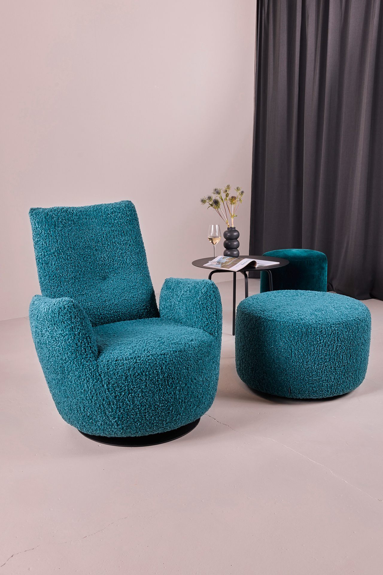 LET'S SWING AND FEEL GOOD. CASUAL, RELAXED DESIGN. A PLACE TO FEEL GOOD. UPHOLSTERY IN SOFT CUSHION LOOK. THE SWIVEL CHAIR WITH HIGH BACK SHELL AND 360° SWIVEL FUNCTION OFFERS MAXIMUM SEATING COMFORT. BASE PLATE MADE OF STEEL, BLACK STRUCTURE-COATED FOR A FIRM STAND. THE LARGE SELECTION OF COVERS, EITHER IN FINE LEATHERS OR IN PATTERNED / PLAIN FABRICS, CHANGES THE APPEAL OF THE SMART PIECE.