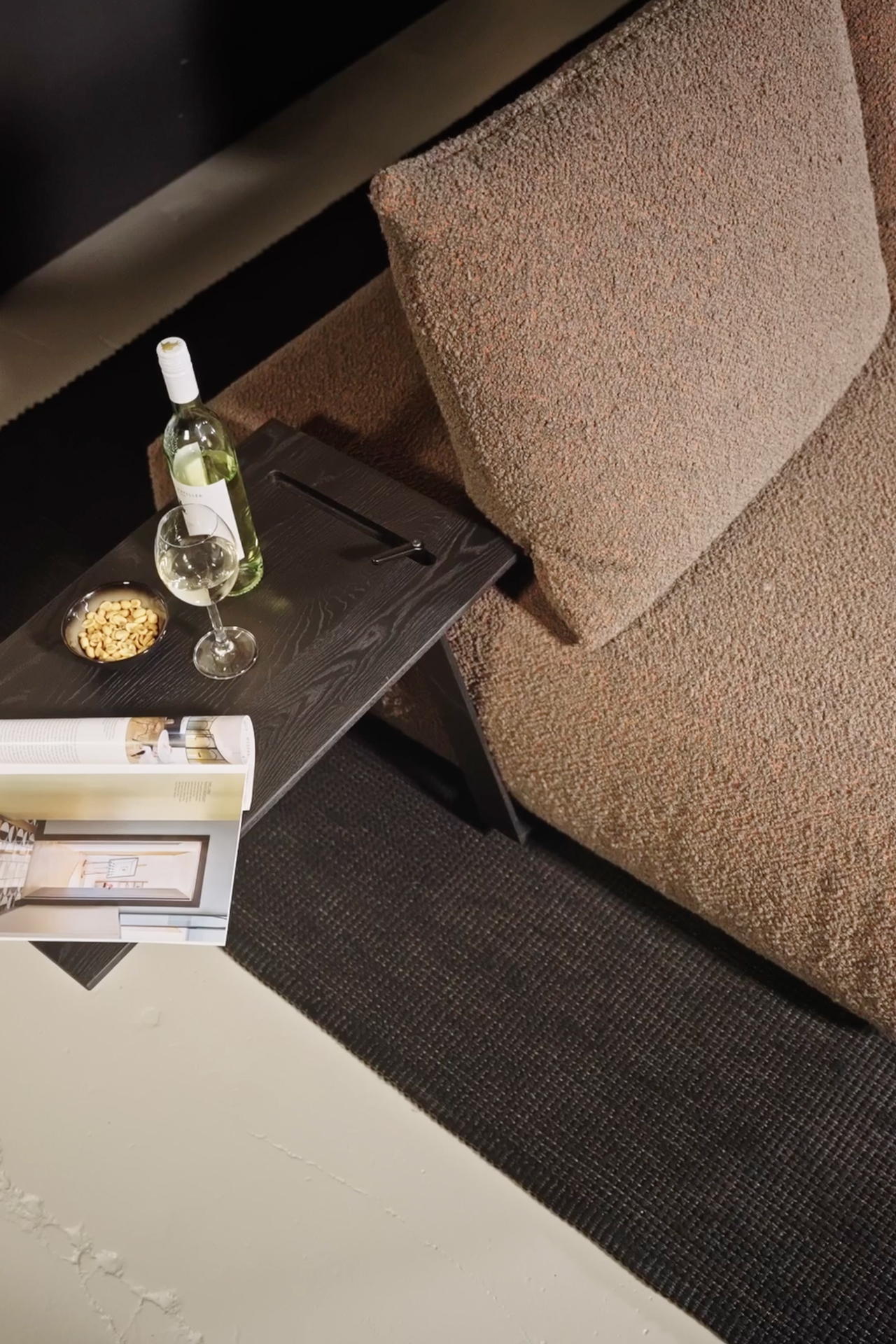 DESIGN IN THE BALANCE OF AESTHETICS, COMFORT AND TECHNOLOGY. EACH ELEMENT CAN BE USED AS A STAND-ALONE UNIT OR IN COMBINATION. VARIOUS ADD-ON SOLUTIONS ARE POSSIBLE. PARTICULARLY COSY WITH AN INTERMEDIATE TABLE MADE OF SOLID REAL WOOD. INNOVATIVE, THE MOTORISED SEAT DEPTH ADJUSTMENT WHICH MOVES A STEEL CROSSBAR WITHOUT AFFECTING THE SEAT. THIS MAKES IT POSSIBLE TO ADJUST THE SEAT DEPTH INSTANTLY. THE RECAMIER IS EQUIPPED WITH A RIGID TRAVERSE. THE MOTORISED BACK BAR AND THE FEET ARE COATED IN TEXTURED BLACK.