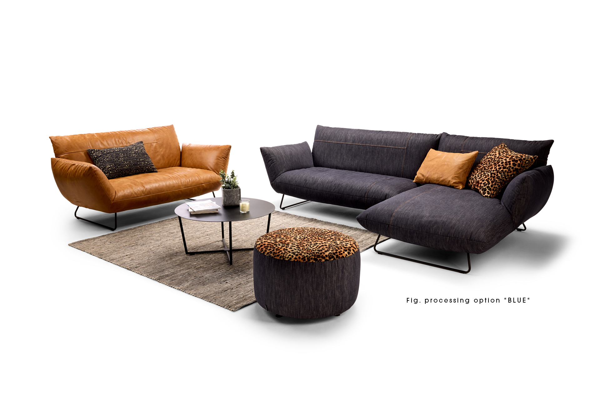 EXTRAVAGANT DESIGN. MAXIMUM COMFORT. PURE RELAXATION. OPTIONALLY AVAILABLE AS A ROTARY AND ROCKING CHAIR, ARMCHAIR, SOFA, LOUNGER AND RECAMIERE. ELEMENTS WITH A CUSHION LOOK ON A METAL BASE FRAME, MATT FINE STRUCTURE POWDER-COATED. LARGE SELECTION OF TEXTILES AND LEATHERS. UNIQUE PIECE PRODUCTION.