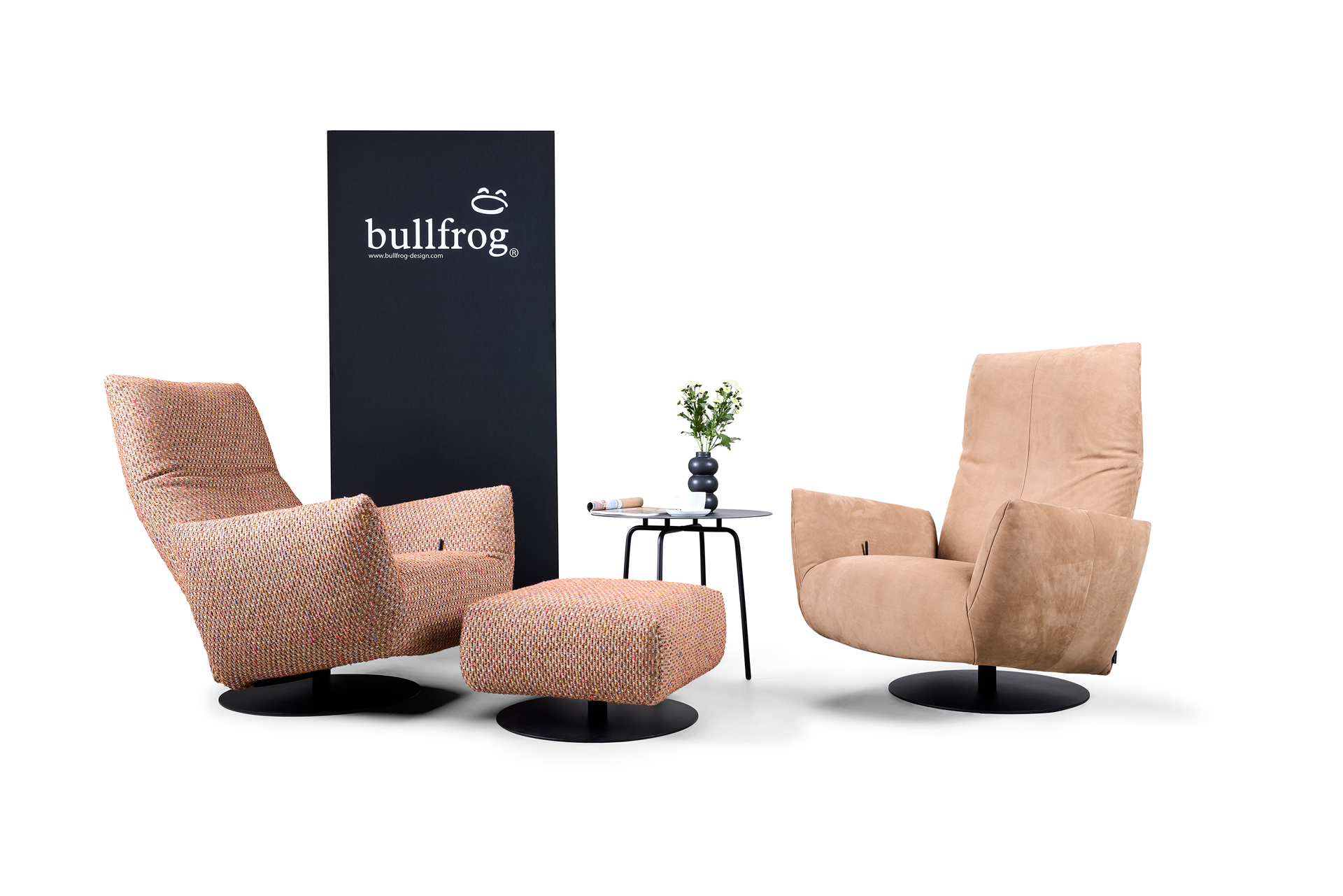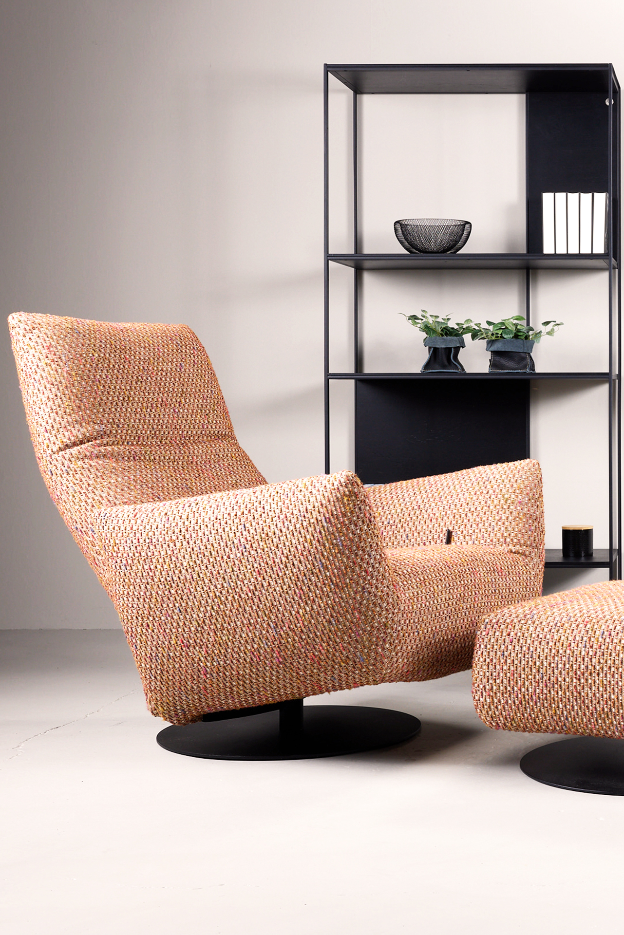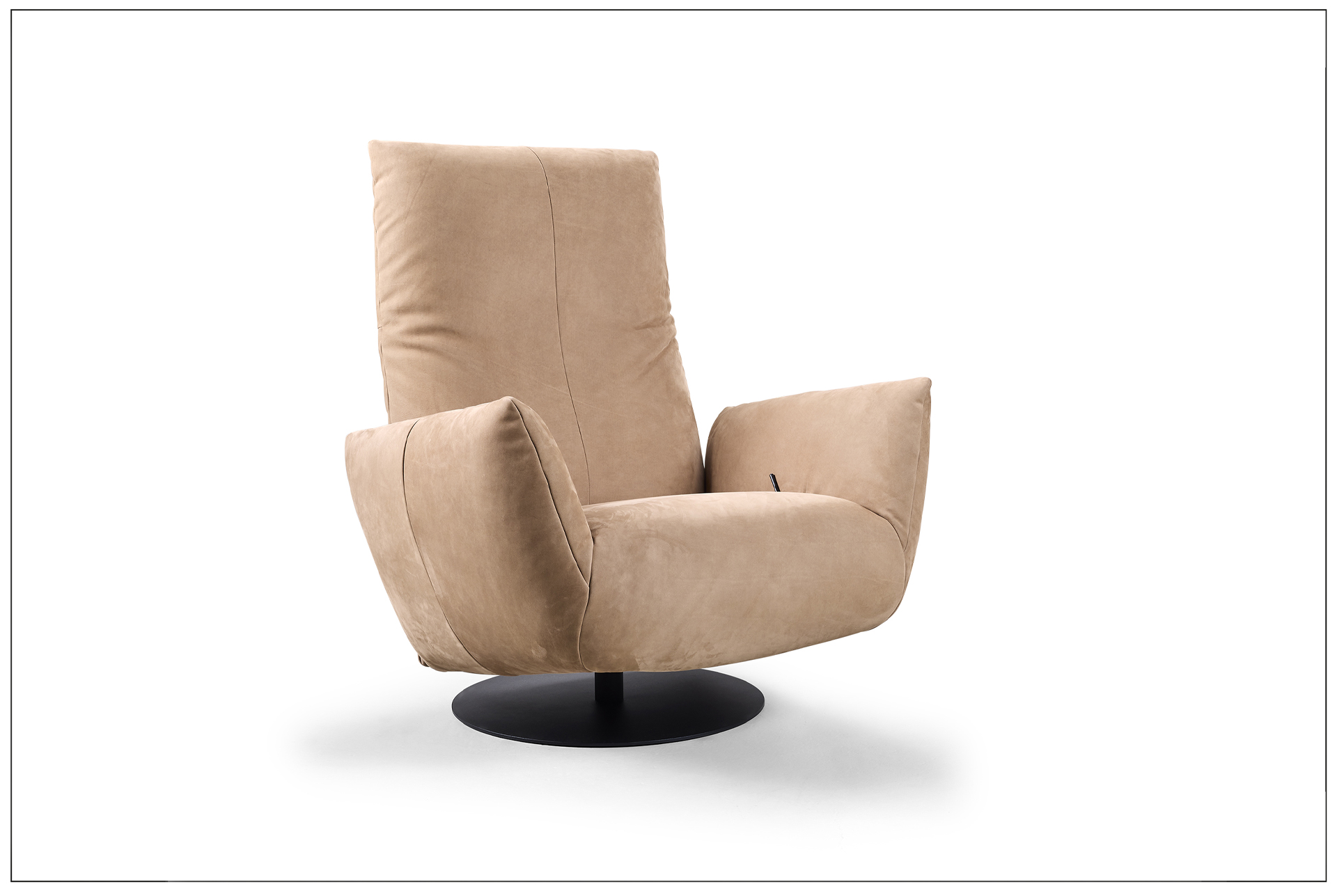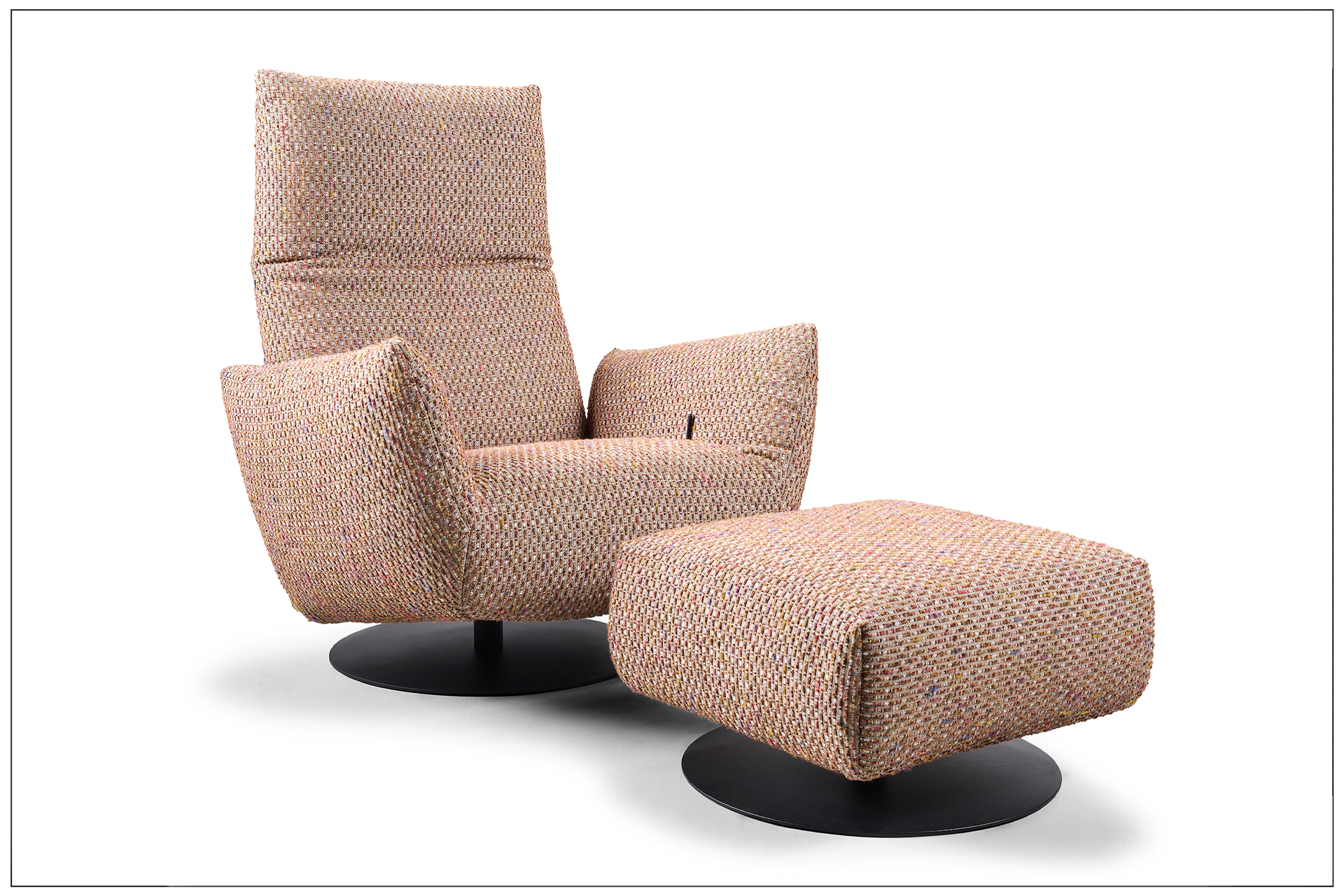 SOLITAIRE WITH LUXURY FUNCTION. OUR NEW HIGH-BACK ARMCHAIR WITH 360° SWIVEL FUNCTION, A LUXURIOUS MANUALLY OPERATED ROCKING SYSTEM, AND A COMFORT BACKREST FOR INDIVIDUAL ADJUSTMENT OF THE RECLINE POSITION. IN ADDITION: THE SWIVELING ROCKING STOOL. PURE LUXURY. UNIQUE PIECE PRODUCTION.