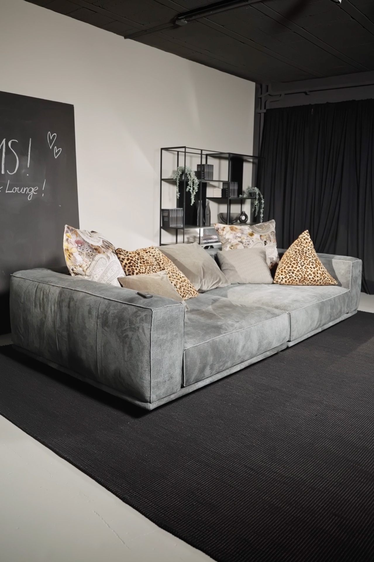 LUX LOUNGE. A DREAM OF FREEDOM - GENEROUS AND LUXURIOUS! A MASTERPIECE FOR THE LIVING ROOM. SIT WITH PLEASURE, LIE DOWN AND CHILL. THE MATERIALS SELECTED FOR THE BEST COMFORT. CUSTOMIZE YOUR SOFA WITH LEATHER OR FABRIC. AS WELL AS THE NUMBER AND SIZE OF THE CUSHIONS. USE OUR VARIETY OF PLAIN AND PATTERNED FABRICS. WUMMS! - A REAL BULLFROG. UNIQUE PIECE PRODUCTION.