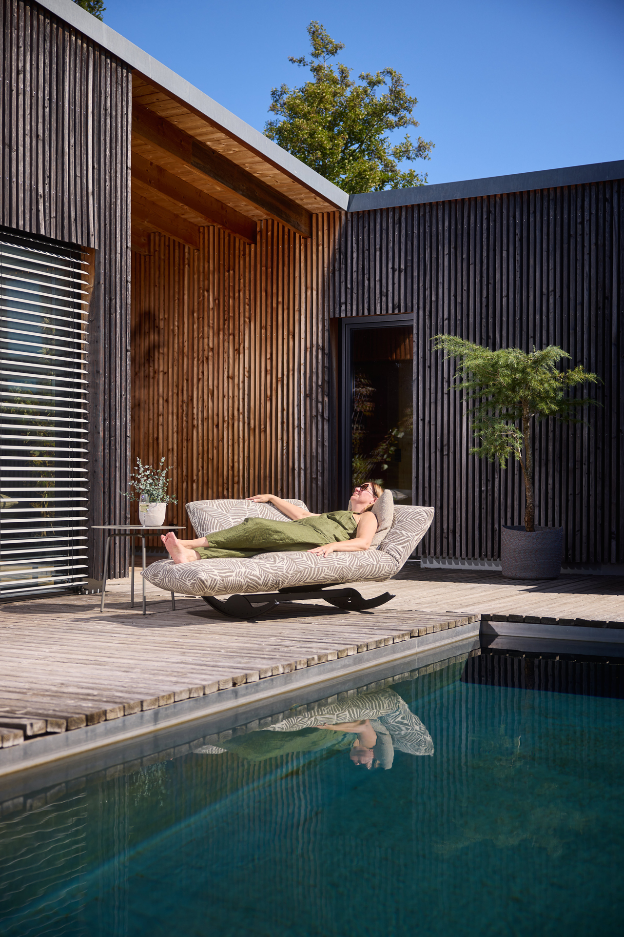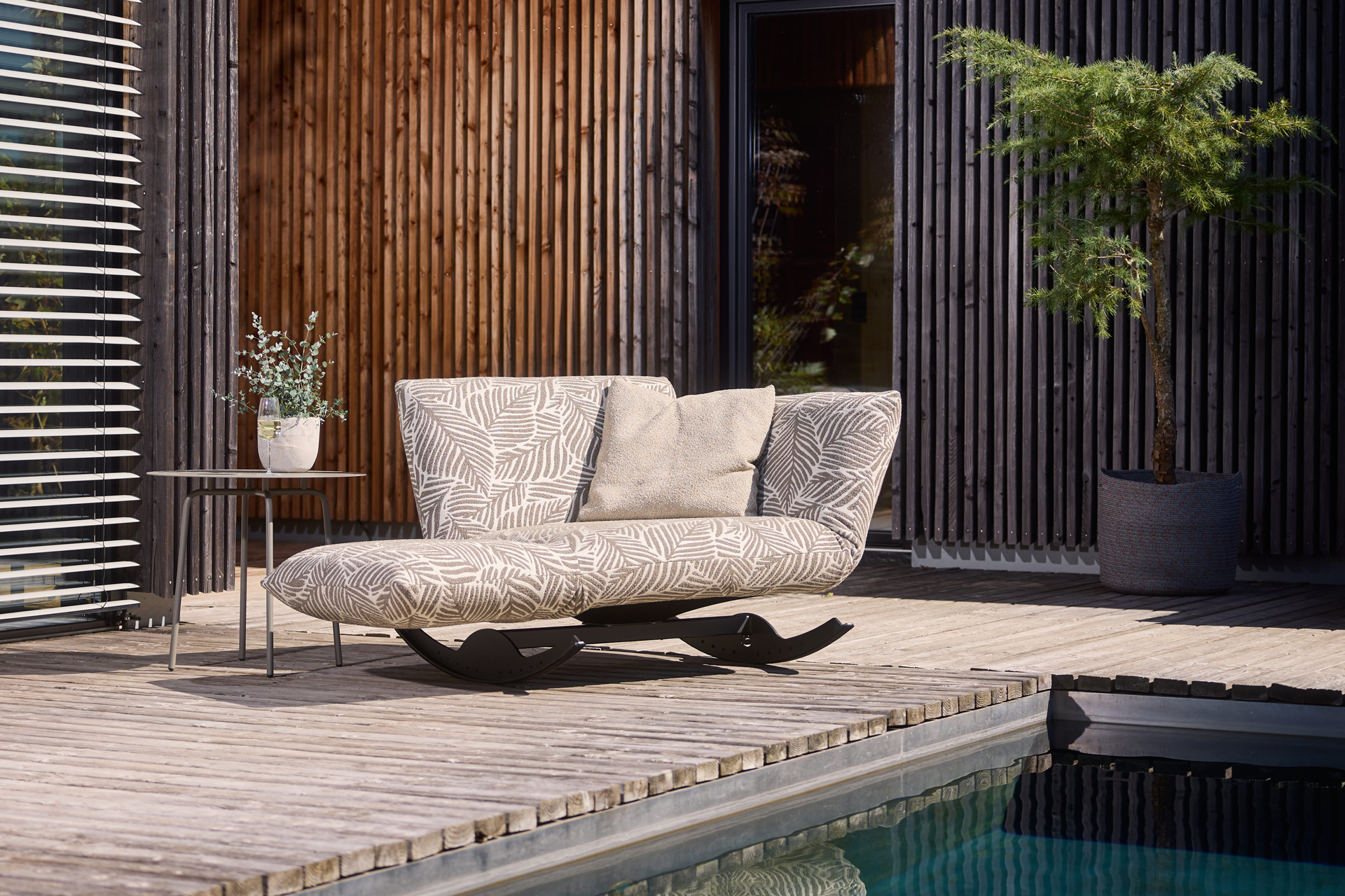 THE HAPPINESS. OUR LOVESEAT, THE SPECIAL SEATING FURNITURE WITH FUN FACTOR. SIT, ROCK, LIE DOWN AND ENJOY THE GENTLE ROCKING! THE ADJUSTABLE ARMRESTS AND THE FLEXIBLE BACKREST CUSHION ALLOW THE INDIVIDUAL USE. YOU CAN ALSO TURN OFF THE ROCKING FUNCTION WITH A FEW HAND GRIPS AND HAVE THE LOVESEAT IN RESTING POSITION. UNIQUE PIECE PRODUCTION.