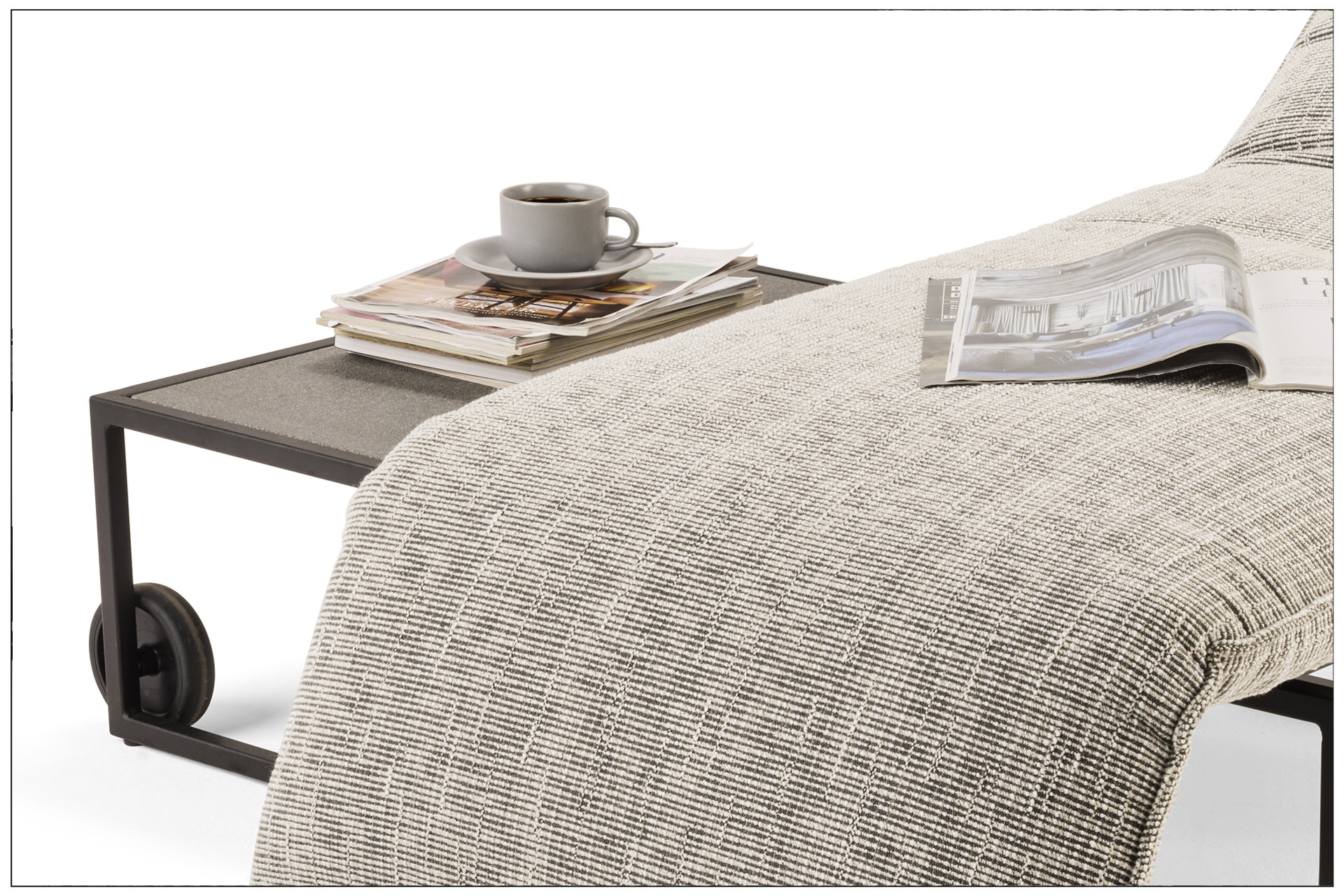 LETTINO TWIST - FUNNY FOR SUNNY. THE SUN LOUNGER WITH THE ROTATION OF 90 DEGREES WILL ALWAYS ACHIEVE YOUR DESIRED POSITION AND THE TABLE NEXT TO IT IS THE PERFECT STORAGE SOLUTION FOR THE NEEDS OUTSIDE. UNIQUE PIECE PRODUCTION.
