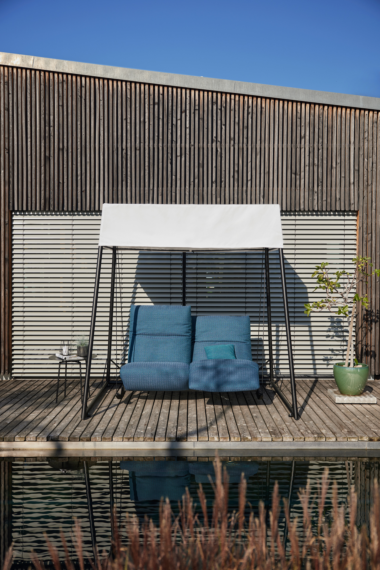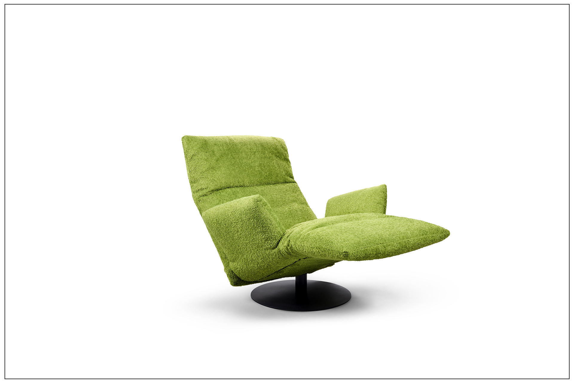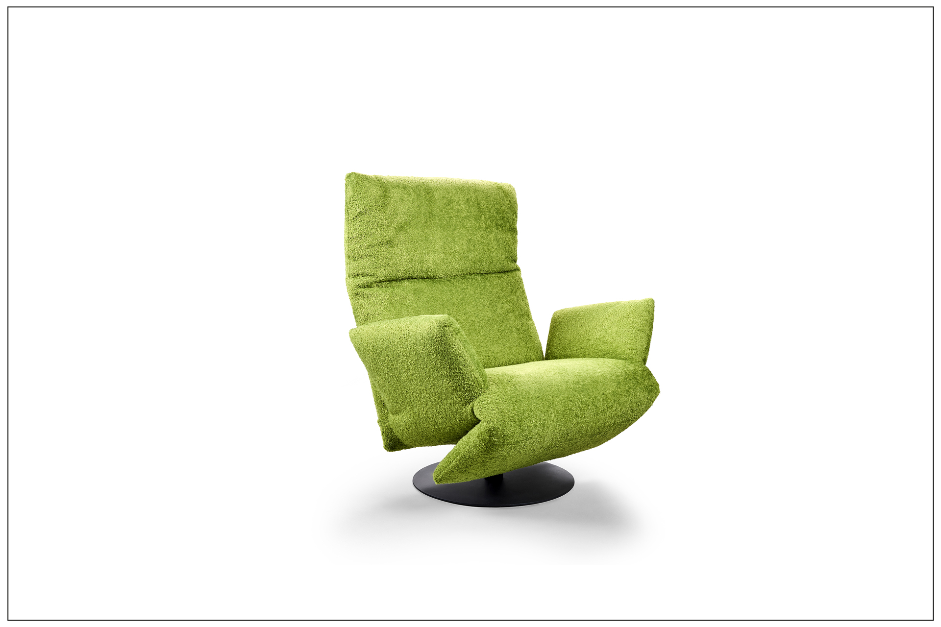 MAGIC SWING. TAKE OFF OR STAY ON THE FLOOR ROCKING. BOTH IS POSSIBLE WITH OUR FAVOURITE SOFA OR ARMCHAIR ROCKFROG. GENTLY ROCKING YOU CAN FIND YOUR PREFERRED POSITION WITH THE SMOOTH AND INFINITE ADJUSTMENT OF THE SEAT AND BACK SECTION. EACH SEAT ALONE AND YET TOGETHER. A PLACE TO RELAX AND LET GO. ROCKING CHAIR / SOFA: THE ROCKING SKIDS ALLOW FOR A GENTLE SWING. THE INFINITELY, MOTORISED SEAT ADJUSTMENT LEADS UP TO THE „HEART BALANCE POSITION“. ROPE SWING CHAIR / SOFA: AT ANY TIME THE HANGING ROPE CAN BE ATTACHED TO THE ROCKFROG. THEN THE MOVEMENTS BECOME WIDER AND YOU BEGIN TO FLY. BODY AND MIND COME TO REST. EVEN NOW THE DESIRED BACK AND SEAT POSITION IS INFINITELY ADJUSTABLE. ROCKFROG IS AVAILABLE WITH OR WITHOUT ARMREST - AS DOUBLE OR SINGLE SEATER. AN EYE-CATCHER OUTDOORS. SWIVEL FUNCTION: ARMCHAIR 180FD WITH TWO ARMRESTS AND A SWIVEL FUNCTION. THE SEATING AND BACKREST POSITIONS CAN ALSO BE ADJUSTED CONTINUOUSLY. UNIQUE PIECE PRODUCTION.