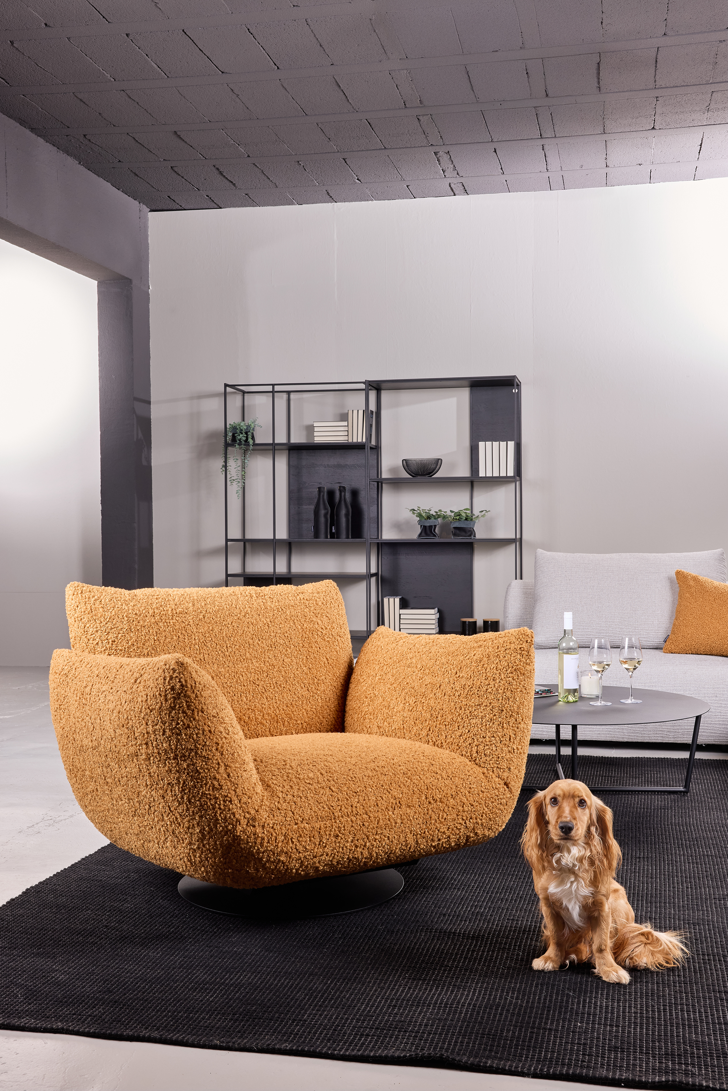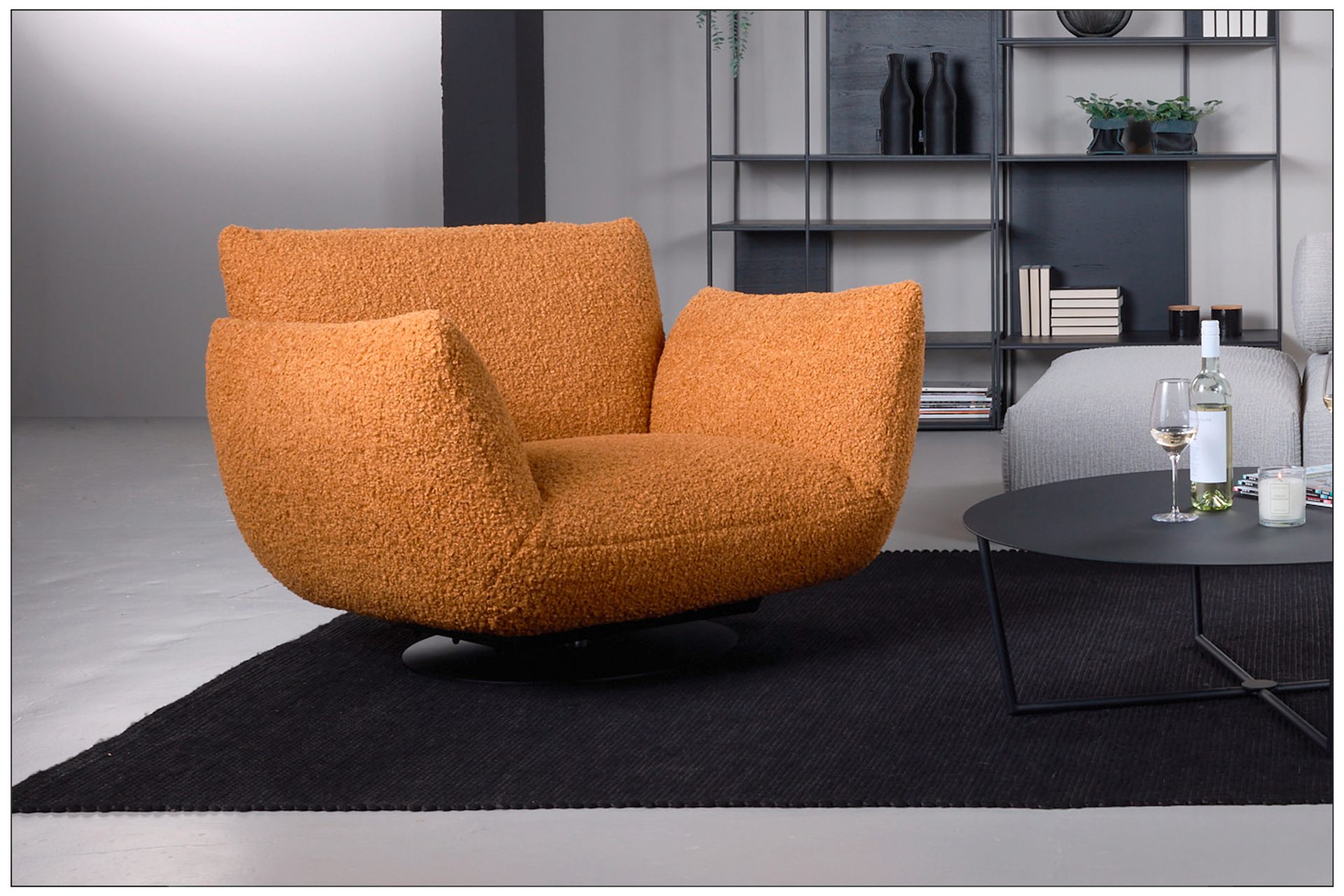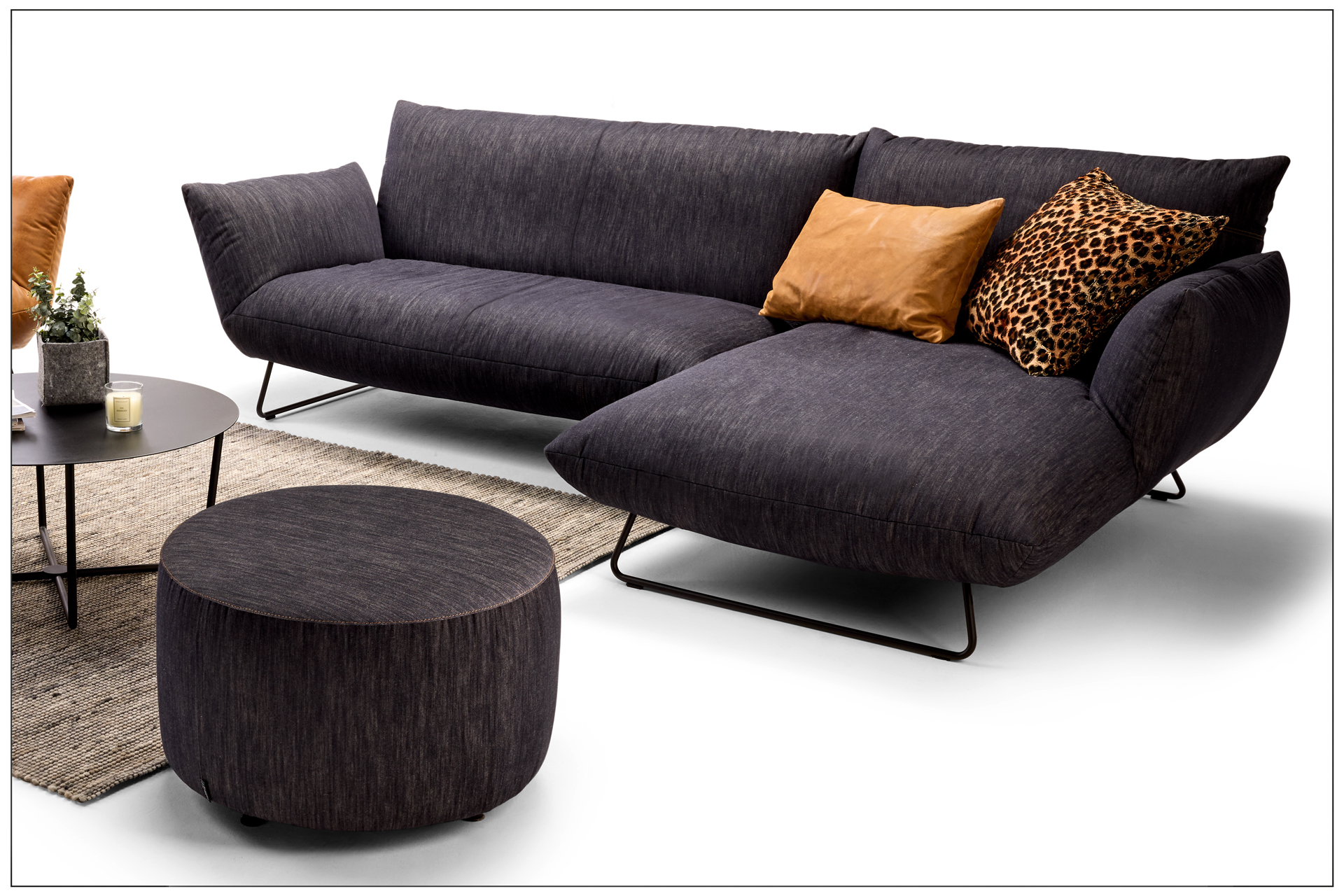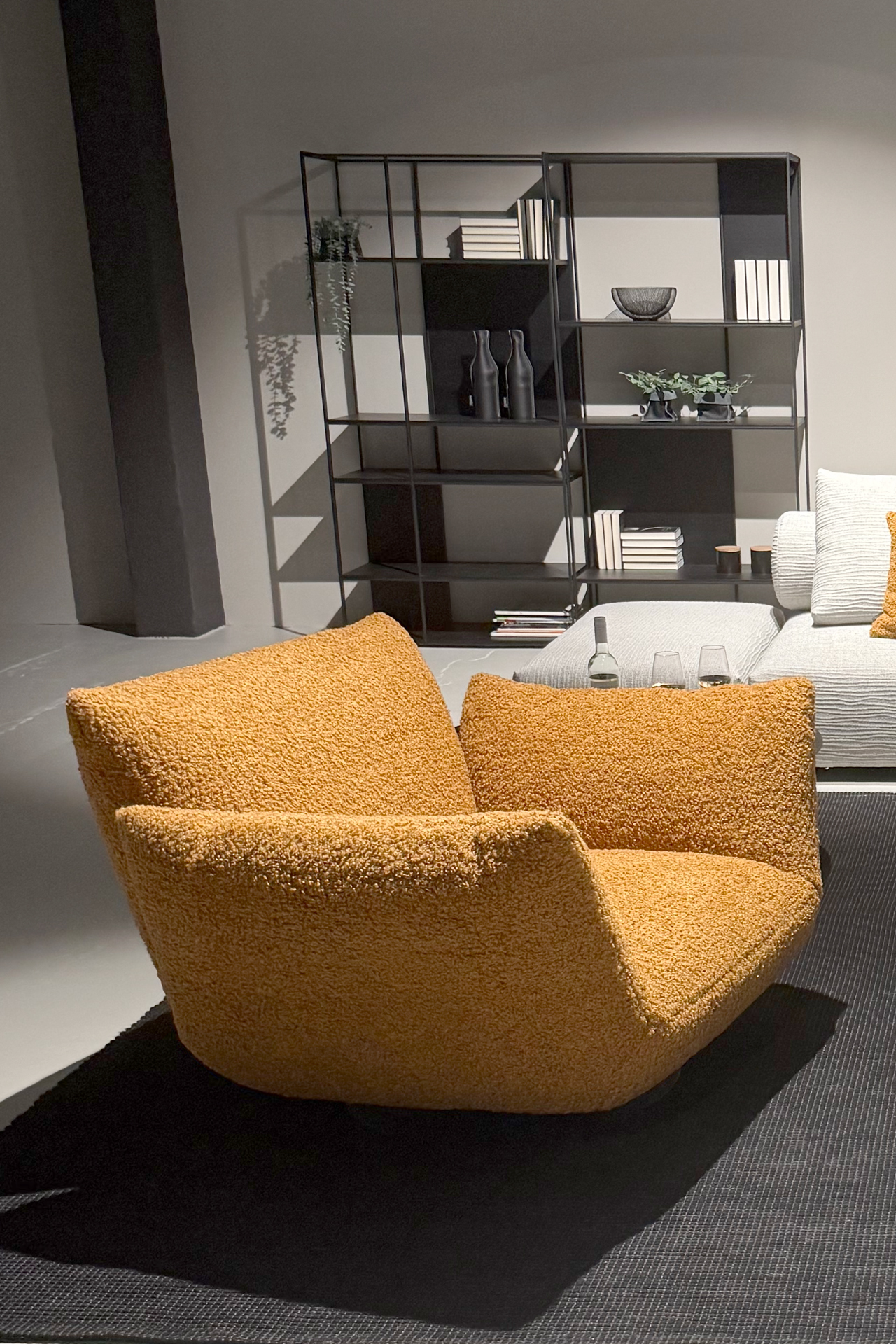 EXTRAVAGANT DESIGN. MAXIMALER KOMFORT. ENTSPANNUNG PUR. WAHLWEISE ALS DREH-SCHAUKELSESSEL, SESSEL, SOFA, LIEGE UND RECAMIERE ERHÄLTICH. ELEMENTE MIT KISSIGER OPTIK AUF EINEM METALL-UNTERGESTELL, MATT FEINSTRUKTUR PULVERBESCHICHTET. GROSSE AUSWAHL AN TEXTILIEN UND LEDERN. ALS UNIKAT GEFERTIGT.