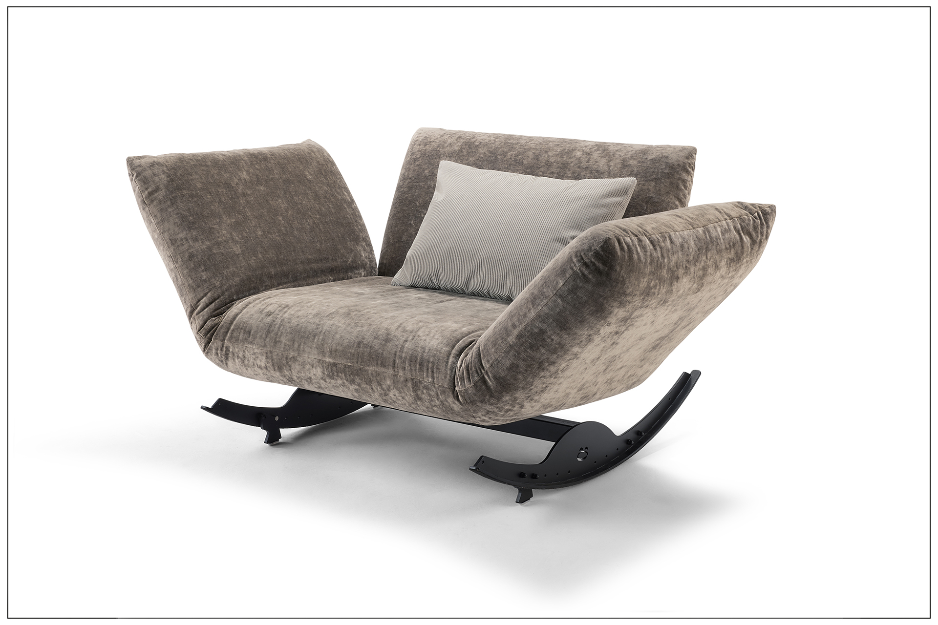 THE HAPPINESS. BESONDERES SITZMÖBEL MIT SPASSFAKTOR. SITZEN, WIPPEN, LIEGEN UND DAS LEICHTE SCHAUKELN GENIESSEN. DEN INDIVIDUELLEN NUTZEN ERMÖGLICHEN DIE VERSTELLBAREN ARMTEILE UND DAS BEWEGLICHE RÜCKENPOLSTER. AUCH KANN MAN MIT WENIGEN HANDGRIFFEN DIE SCHAUKELFUNKTION ABSTELLEN. ALS UNIKAT GEFERTIGT.