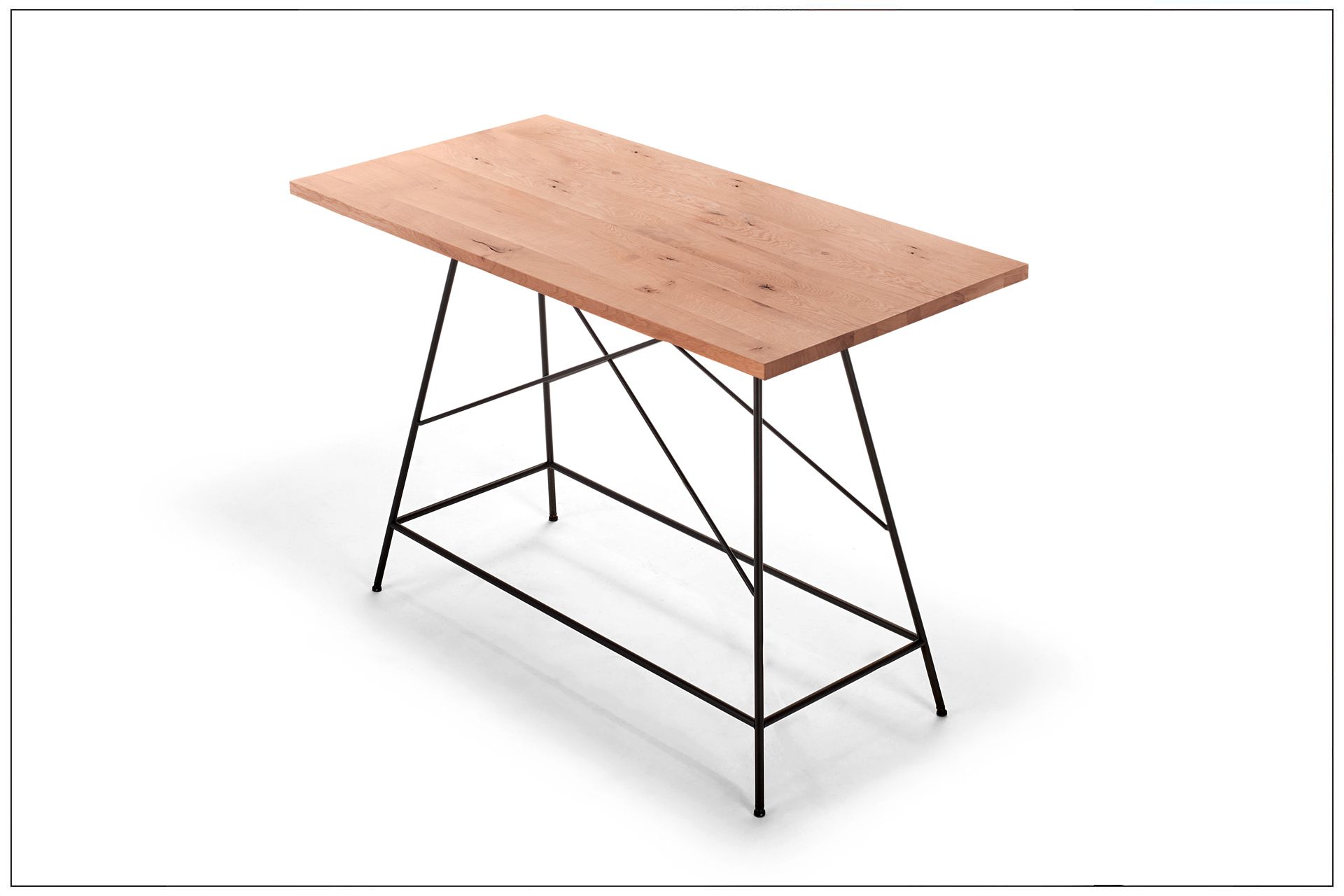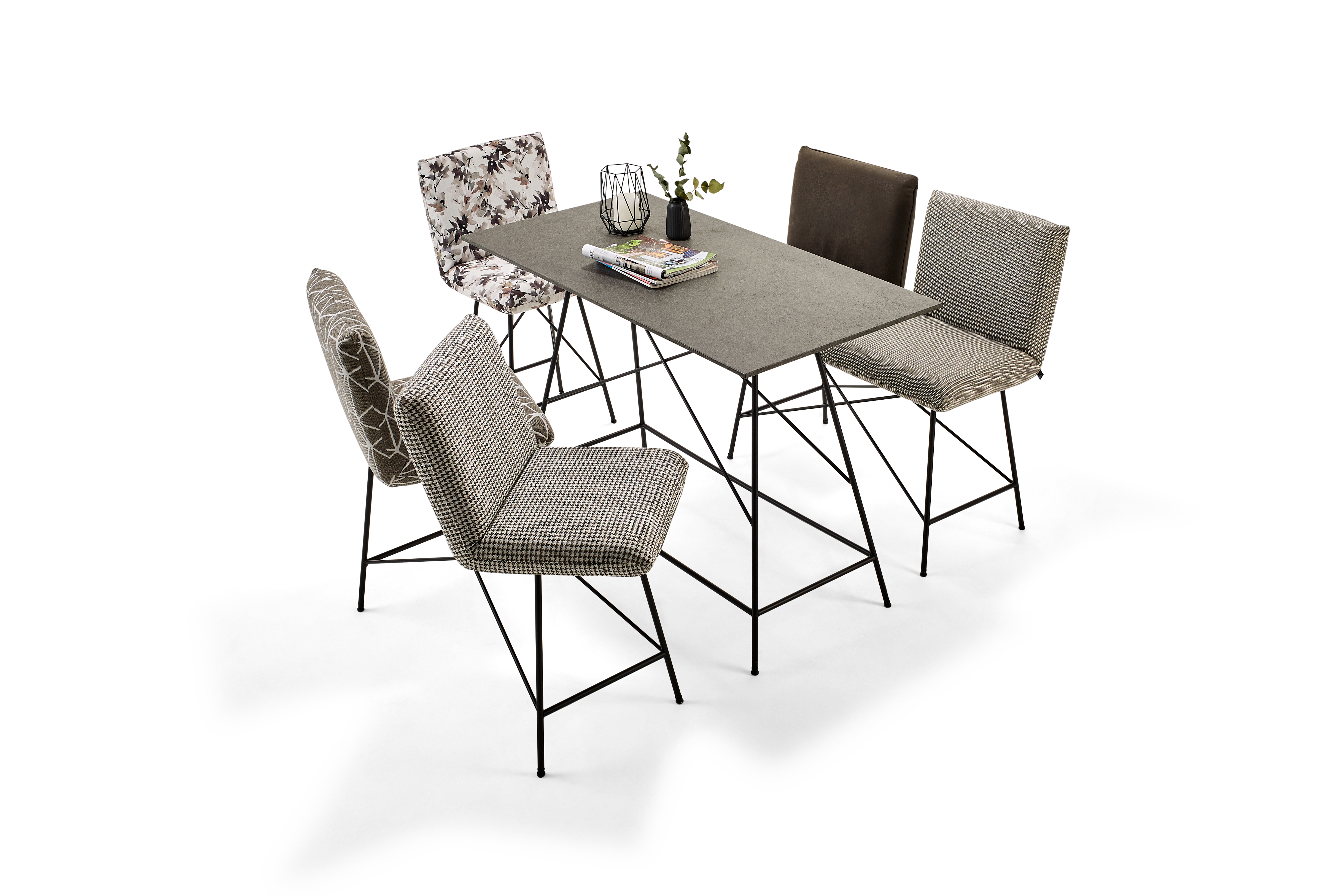 WOHNLICHER TISCH AUF BARHÖHE MIT FILIGRANEM UNTERGESTELL AUS METALL MIT INTEGRIERTER BEQUEMER FUSSABLAGE. DAZU SITZBÄNKE UND -HOCKER MIT DREHBAREN SITZEN UND KOMFORTABLEN RÜCKEN MIT RASTFUNKTION. EIN GESELLIGER PLATZ DER ZUM MITTELPUNKT JEDEN ORTES WIRD. ALS UNIKAT GEFERTIGT.