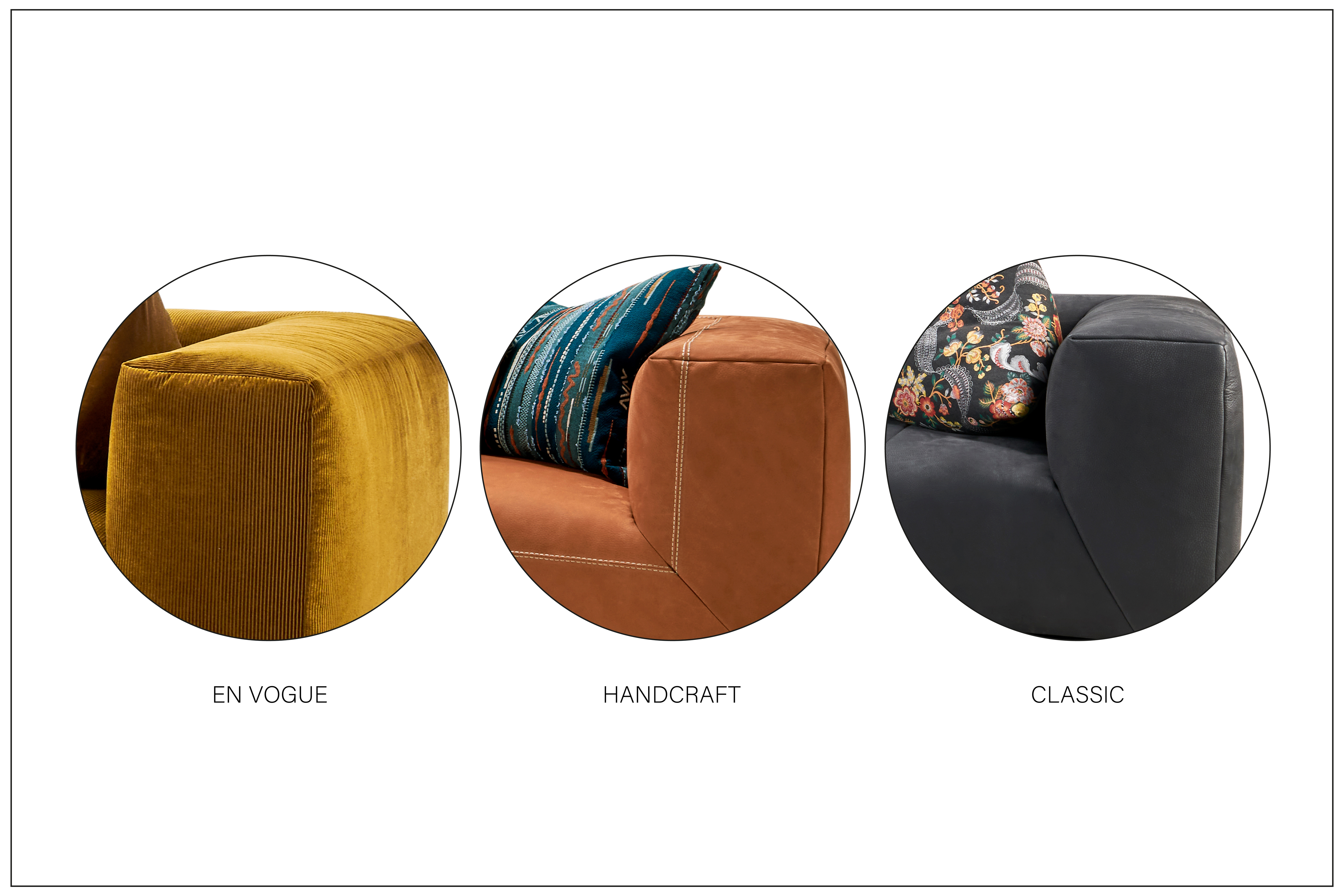 SELECT YOUR LOOK. DAS WOHNPROGRAMM MIT 3 UNTERSCHIEDLICHEN GESICHTERN. EBEN SPHINX! KUBISCH KLAR IN DER FORM, DIE HOCHWERTIG KOMFORTABLEN POLSTERELEMENTE, ALS BASIS FÜR DIE GEWÜNSCHTE KONFIGURATION IM RAUM. WÄHLBAR IN 3 VARIANTEN: 1. CLASSIC - PURE LEATHER 2. HANDCRAFT - LEDER MIT MANUFACTNÄHTEN 3. EN VOGUE - TEXTILER LOOK WUNDERBAR SOFTE KISSEN FÜR KOMFORT UND OPTIK ERGÄNZEN DIE INDIVIDUELLEN MÖGLICHKEITEN. BEZÜGE WÄHLBAR IN LEDER UND STOFF AUS UNSERER REICHHALTIGEN KOLLEKTION. ALS UNIKAT GEFERTIGT