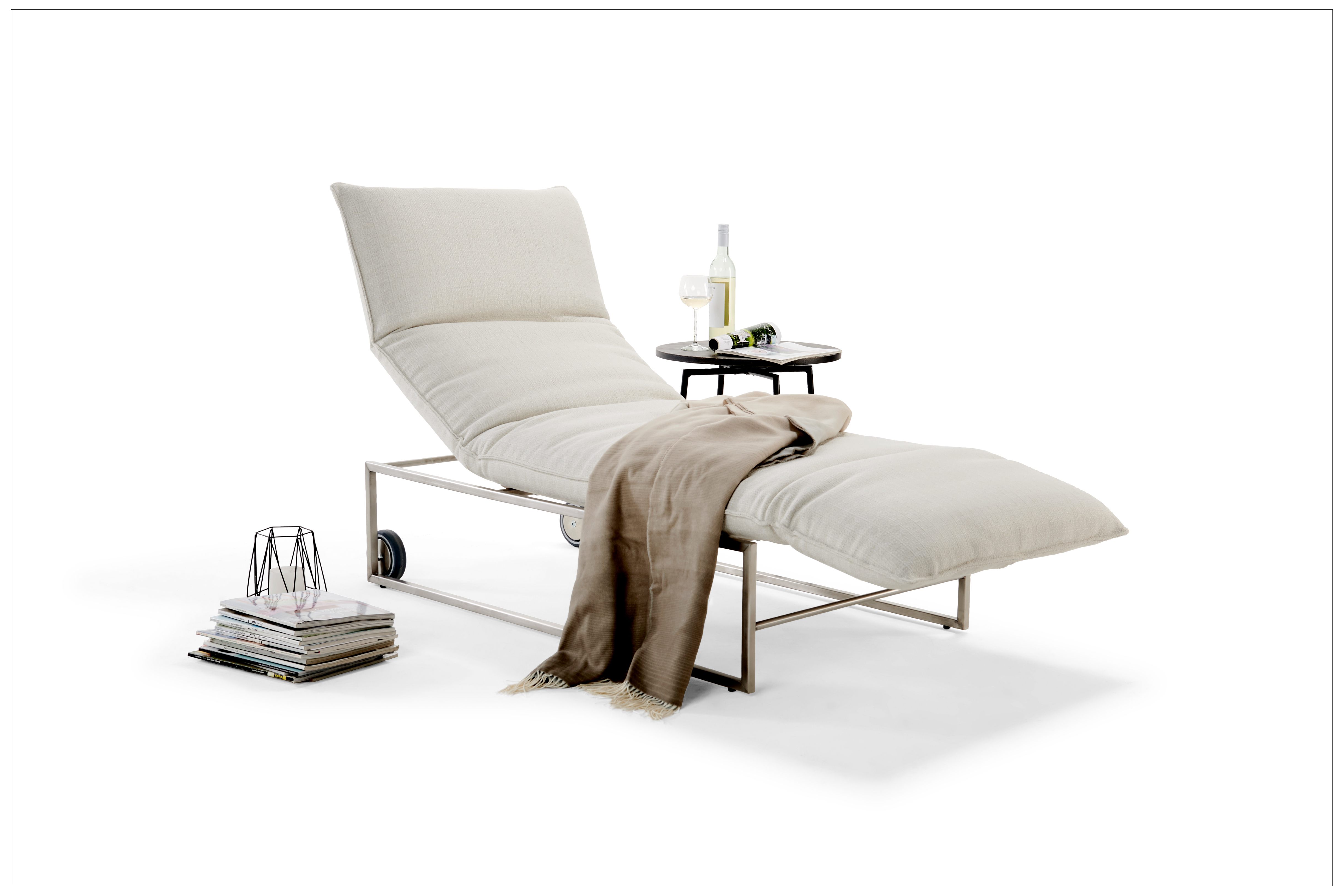 JUST RELAX. WIE AUF EINER WOLKE SCHWEBEN. OUTDOOR GARTENLIEGE UND SESSEL MIT SOFTEM, KISSIGEM POLSTER AUF EINEM LEICHTEN, HOCHWERTIGEN UNTERGESTELL AUS EDELSTAHL. KOPF- UND FUSSTEIL DER LIEGE SIND IN MEHREREN STUFEN BIS ZUR LIEGEPOSITION RASTERVERSTELLBAR. DER SESSEL MIT RELAXFUNKTION IST EBENFALLS IN RÜCKEN UND KOPFTEIL RASTERVERSTELLBAR. GROSSE ROLLEN AM UNTERGESTELL SORGEN FÜR BEWEGLICHKEIT. ZUSAMMEN MIT DEM NEUEN HOCKER GENIESSEN SIE DEN INDIVIDUELLEN RELAXKOMFORT. LEICHT HÖHENVERSTELLBARE GLEITER IN SESSEL UND HOCKER ERMÖGLICHEN DEN NIVEAUAUSGLEICH AUF UNEBENEN FLÄCHEN. ALS UNIKAT GEFERTIGT.